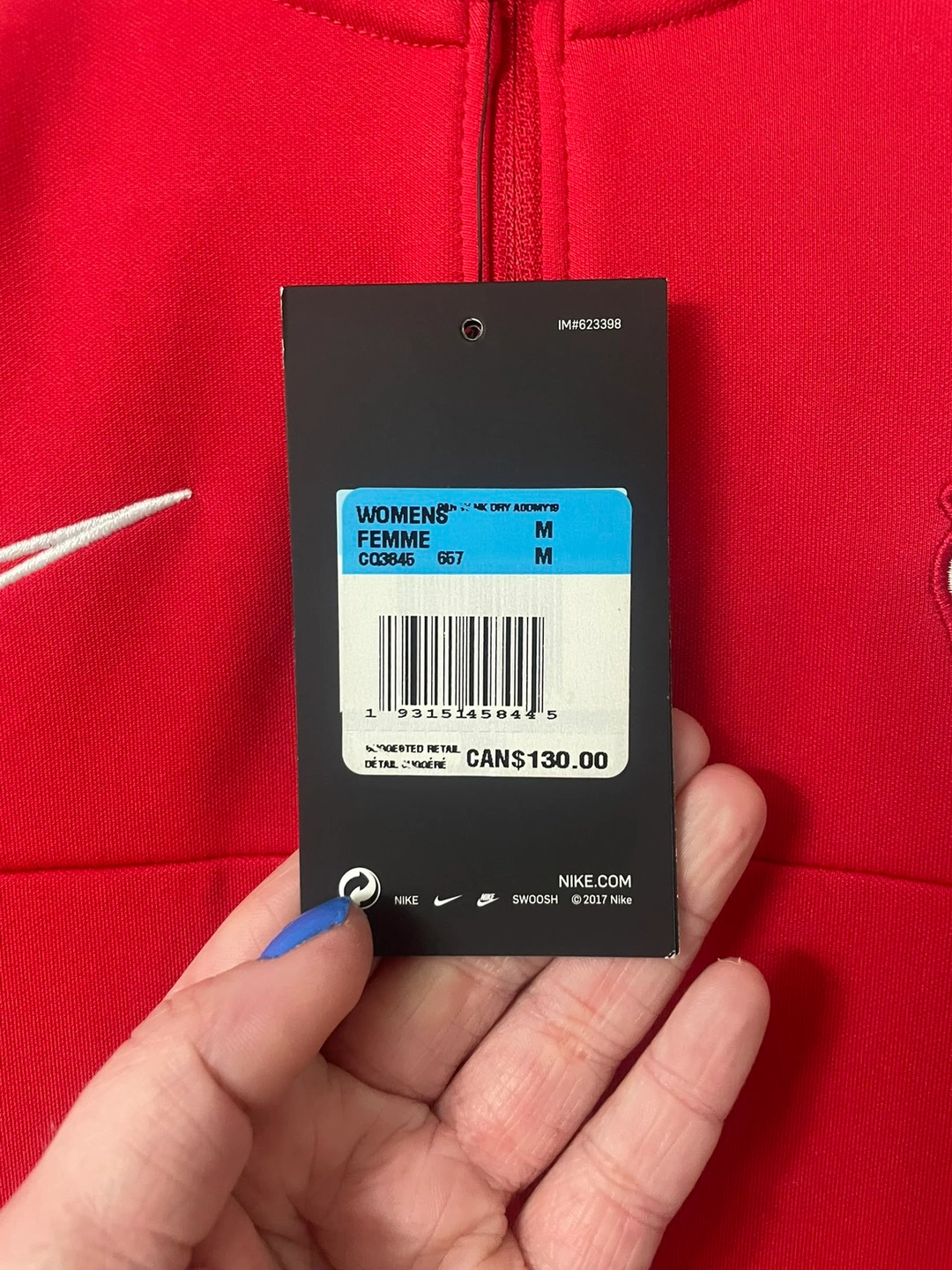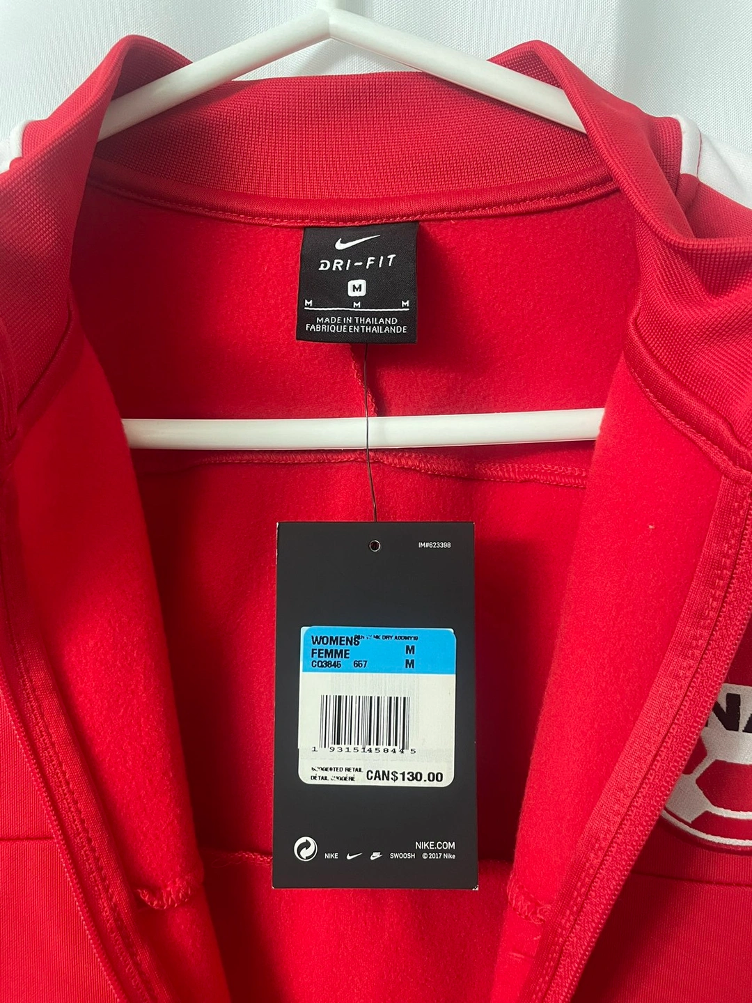 Brand new with tag official Nike World Cup Canada zip up top in women’s medium. Retails for $130. Fleece lined and zipped pockets. See all the pics for more product detail. Cash preferred.
