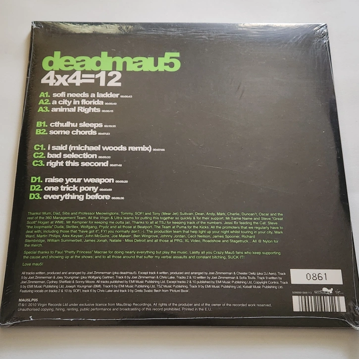 deadmau5 4x4=12 Vinyl Limited Edition Red & Green Colored 2LP Set.