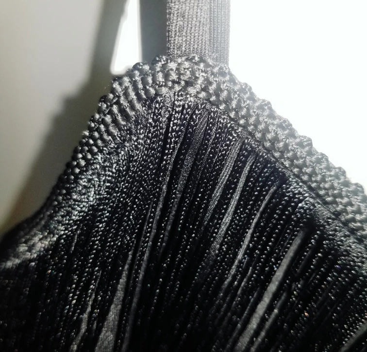 that sway with your movements, which makes it a fun top to go dancing in. Cha cha cha. Its jet black color allows you to match it with any colored bottoms...mini skirts, shorts, tights, and jeans.