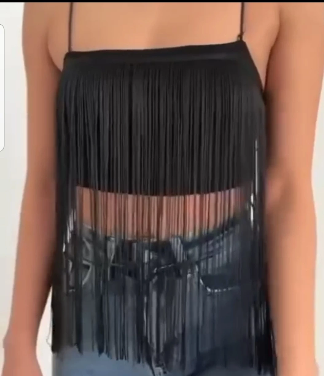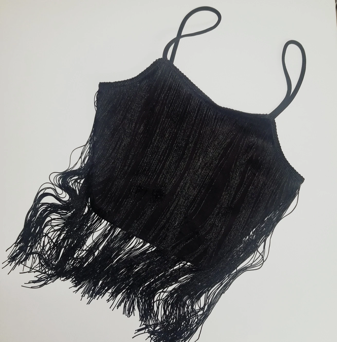 Sexy Cami with Fringes, Jet Black Crop Top XS, NWT