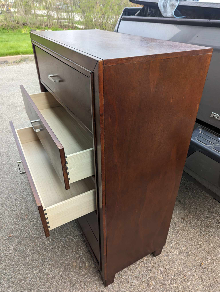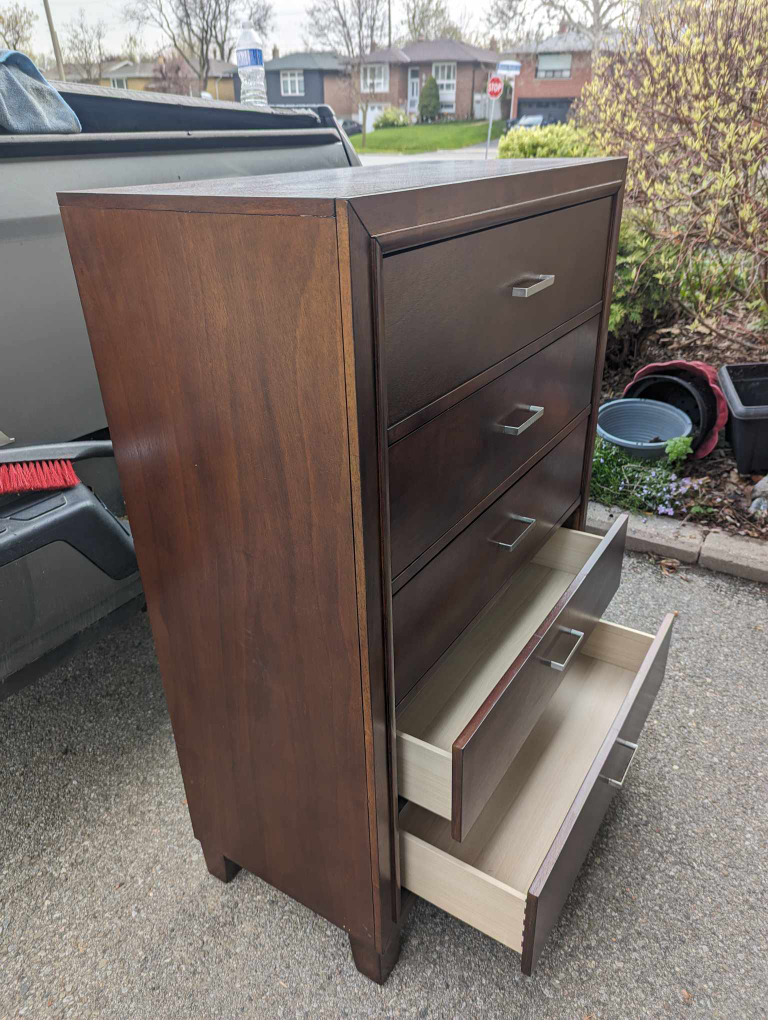 Like new, nothing cracked or broken. All drawers slide smoothly.