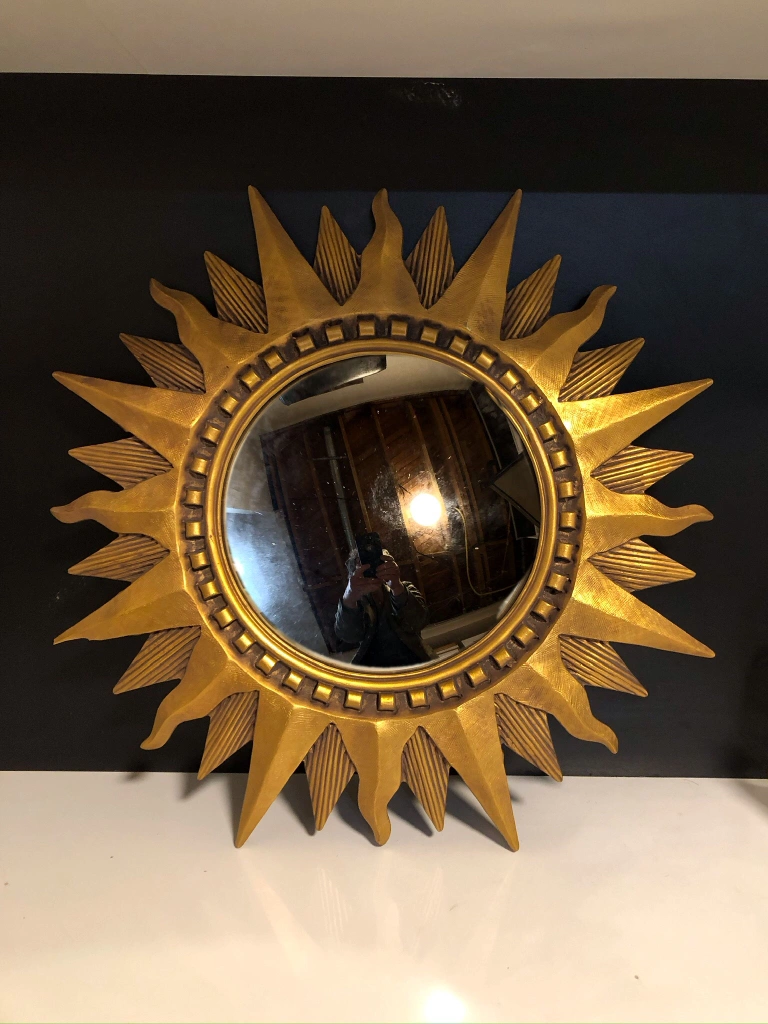 Gold Sunburst Convex Mirror, Shabby Chic, Vintage