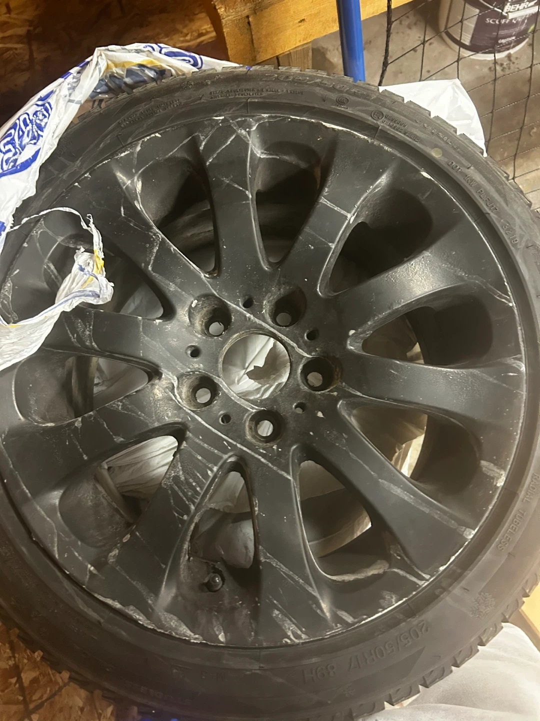 0Selling a used winter tire mounted on a 17” rim. The tire size is 205/50R17 89H. Bolt pattern 5x120 will fit alot of makes and models but this was for a bmw
