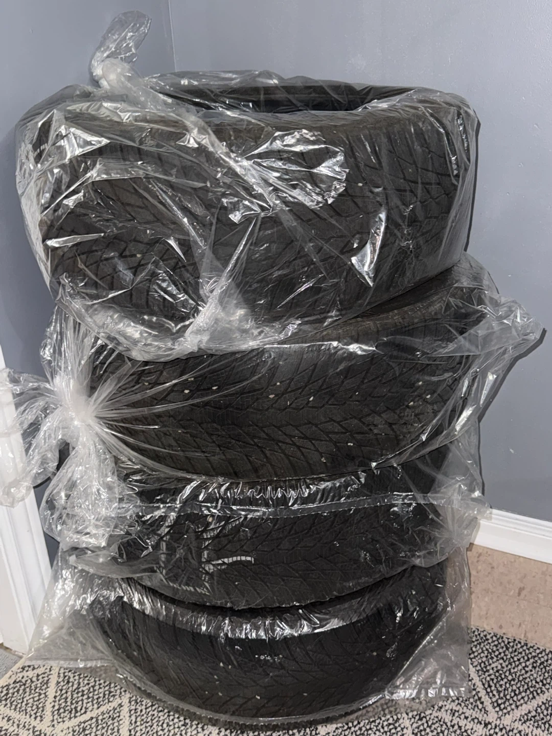 Selling a great set of winter tires because I sold the car. They were only used for one winter, so they've got tons of life left—under 3000 km driven. Plus, they were only used for easy city driving and have been stored indoors for summer.You're looking at about 90% tread still there.They've never been repaired or patched, so they're in excellent shape. Tires are off the rims and ready to go. Shoot me a message if you want them! Cash preferred. Brand: Greentrac Model: Winter Master D1