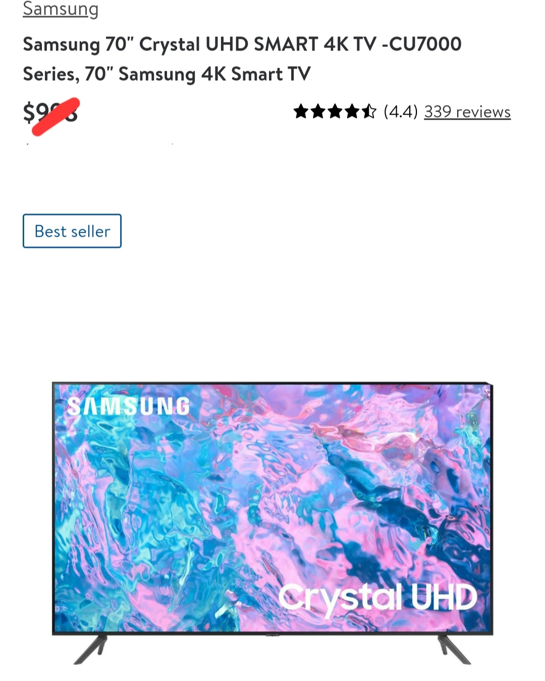 On SALE! SAMSUNG 70" 4K CRYSAL UHD SMART TV $739.99!