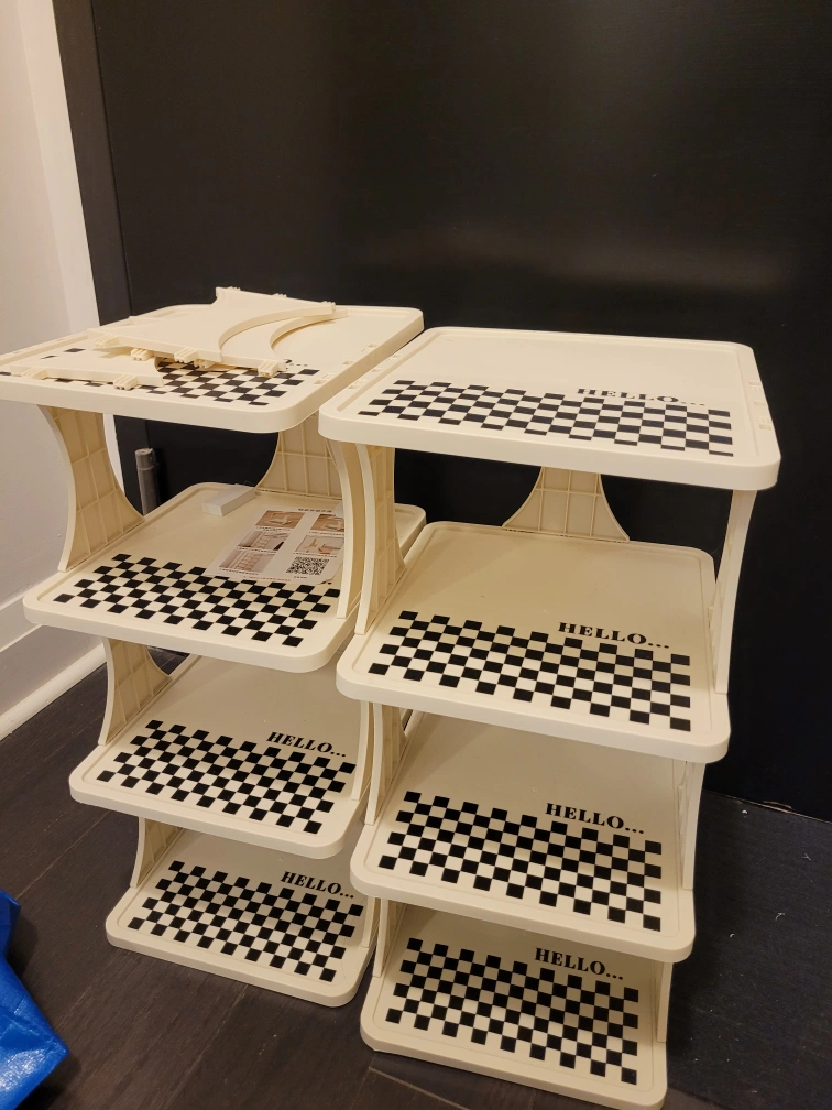 8 tier shoe rack, currently split into two, used for two weeks, selling because doesn't fit my needs