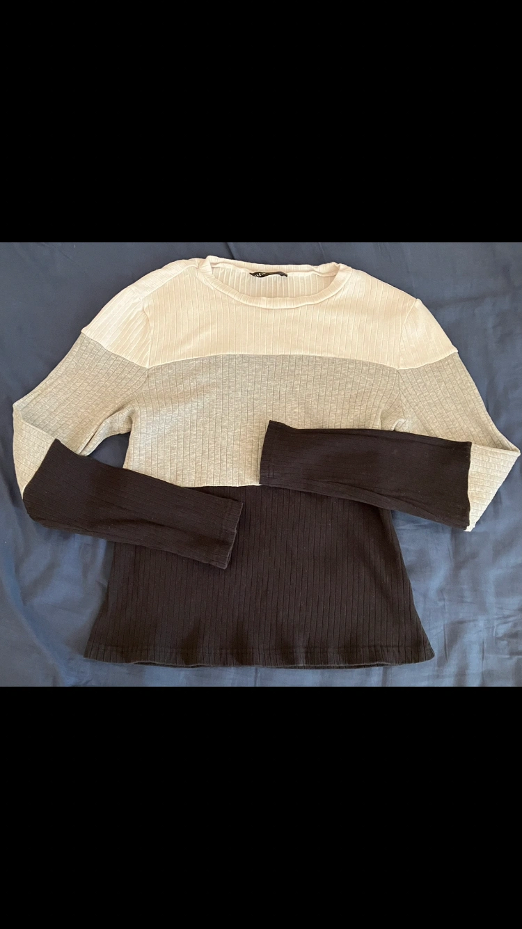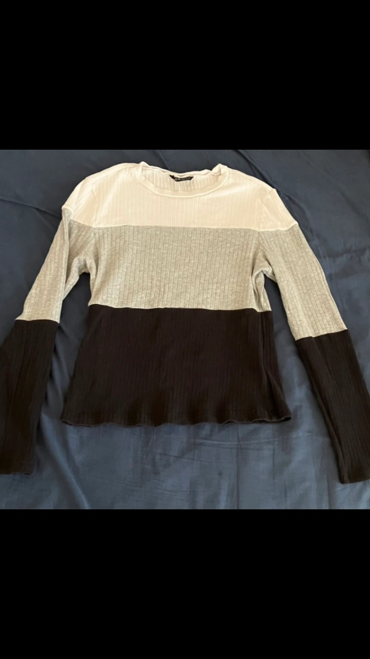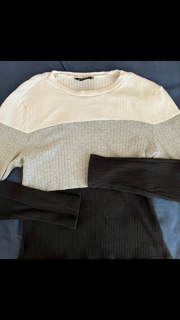 Shein Womenโs Colourblock Cotton fitted shirt top. ๐ White, grey, and black ribbed top. Very soft, never been worn, but itโs been washed once when I first bought it as I wash all my clothes right away when I first buy them.