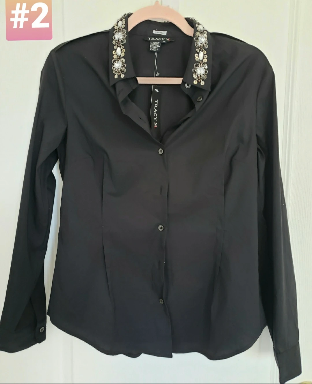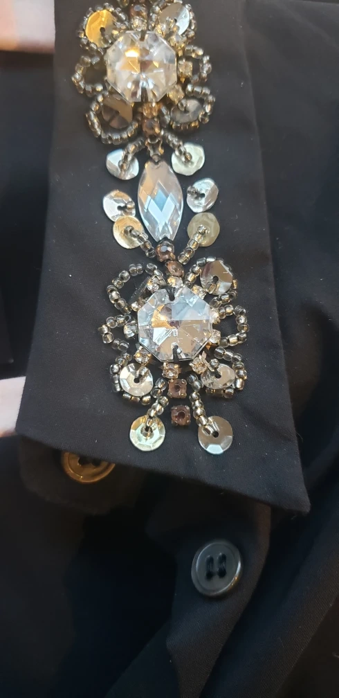 New with tags beautiful black tunic / shirt with embellishments on the entire collar. Has long sleeves and cuffs, full front open.