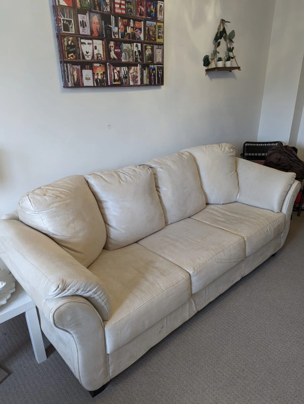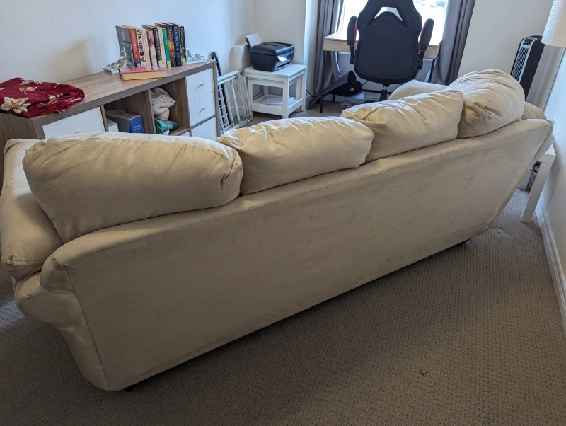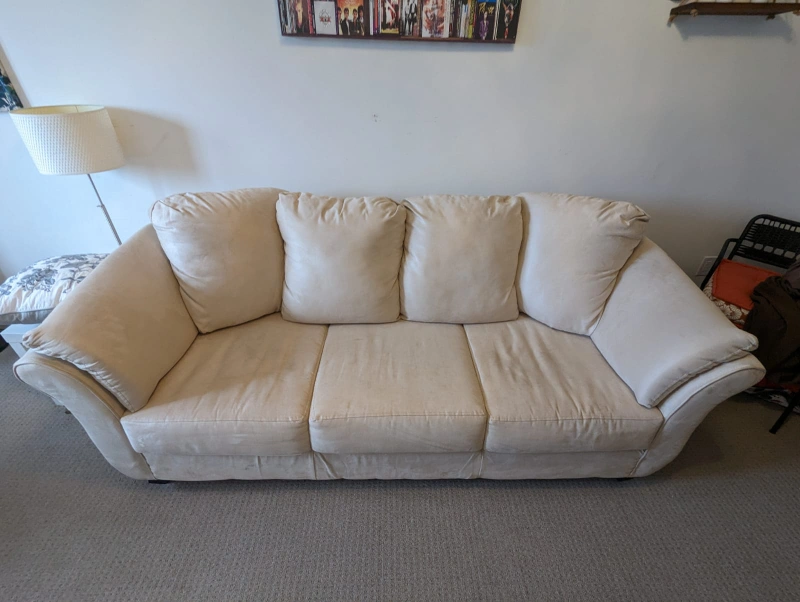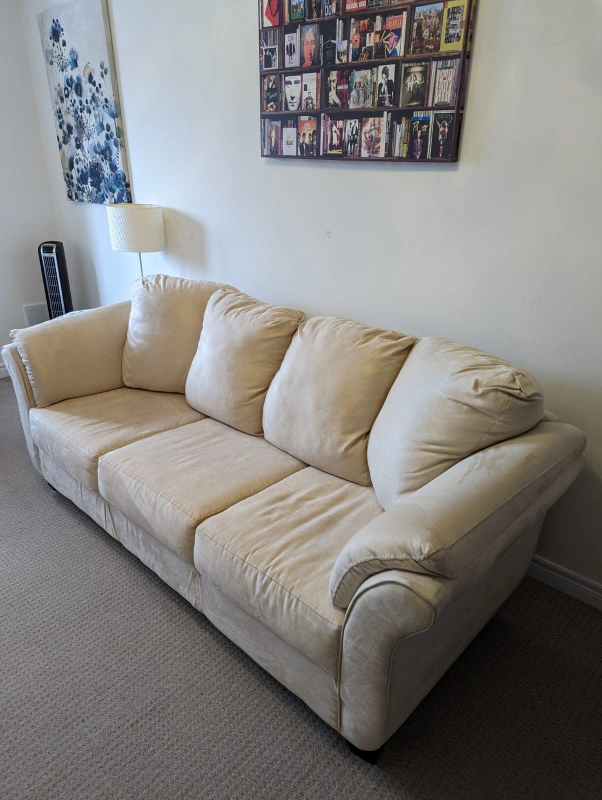 new unused couch 3 seater kept under couch cover in spare room. no rips stains or damage. vety comfortable. pickup only from street level of a townhouse in Markham.
