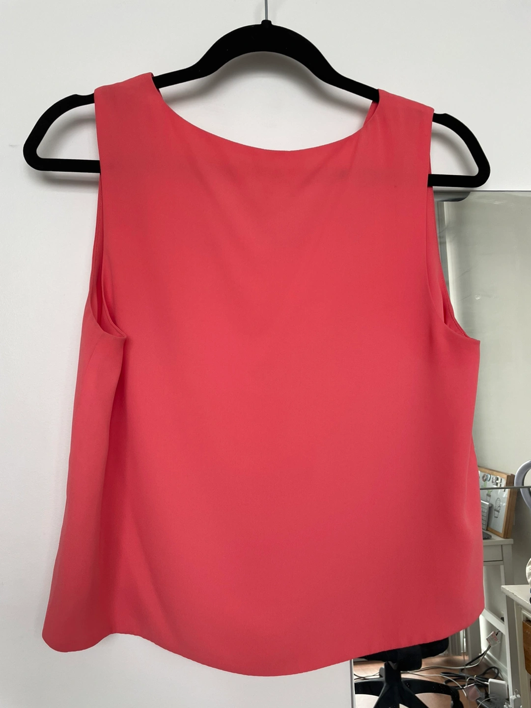 Coral sleeveless top, very flowy and bright, perfect for spring. A little bit of wear on the bottom right (see last photo) but it’s hardly noticeable and otherwise in good condition.