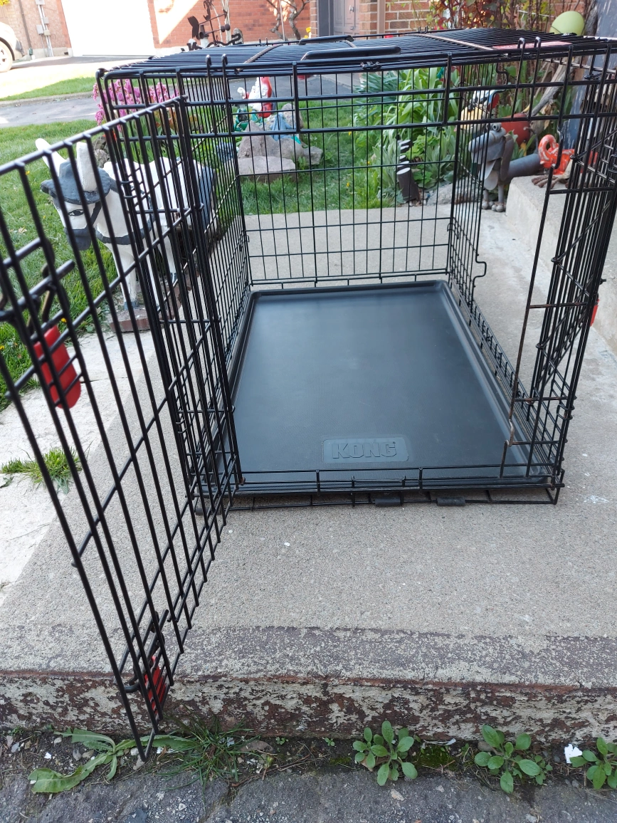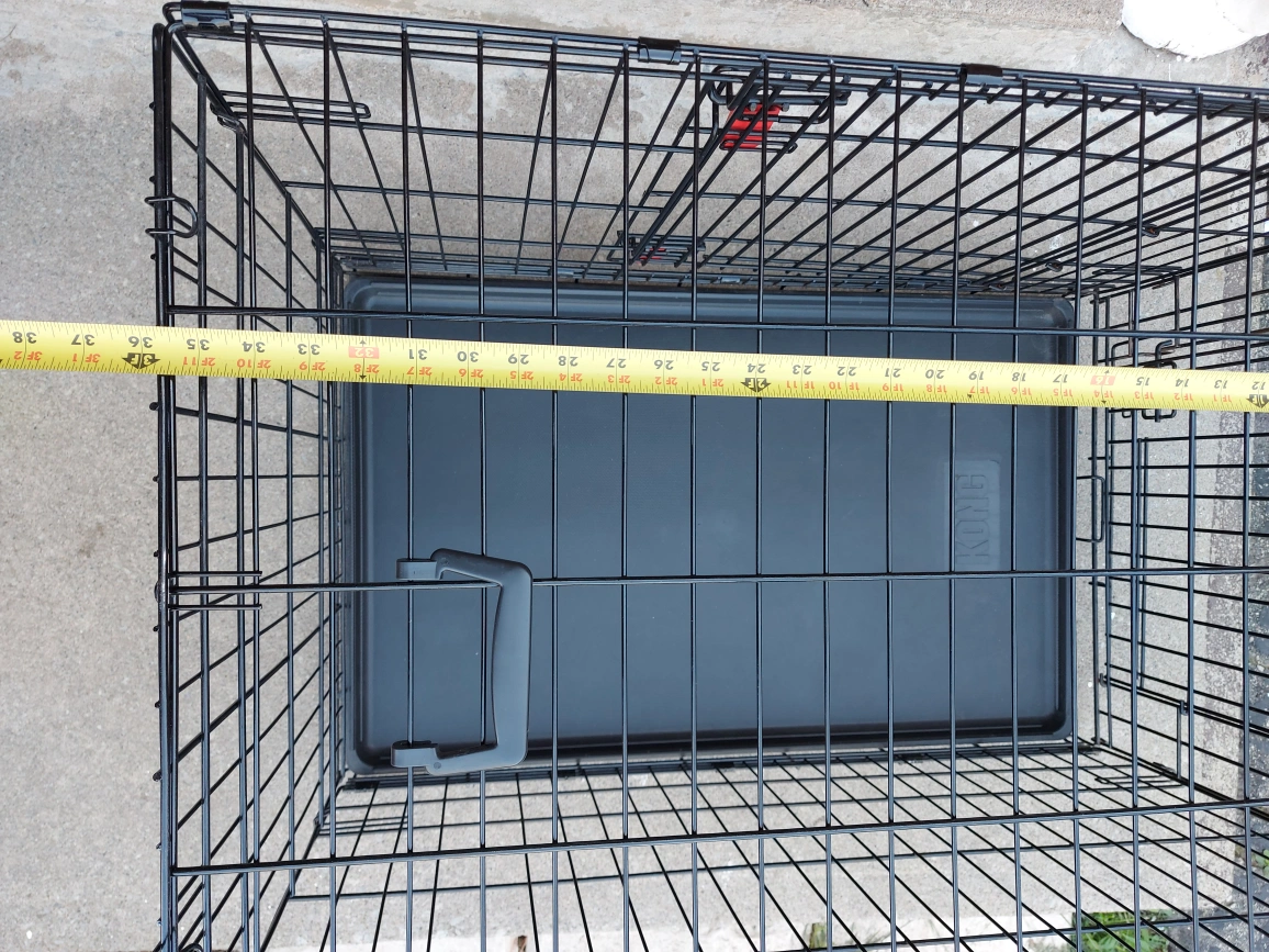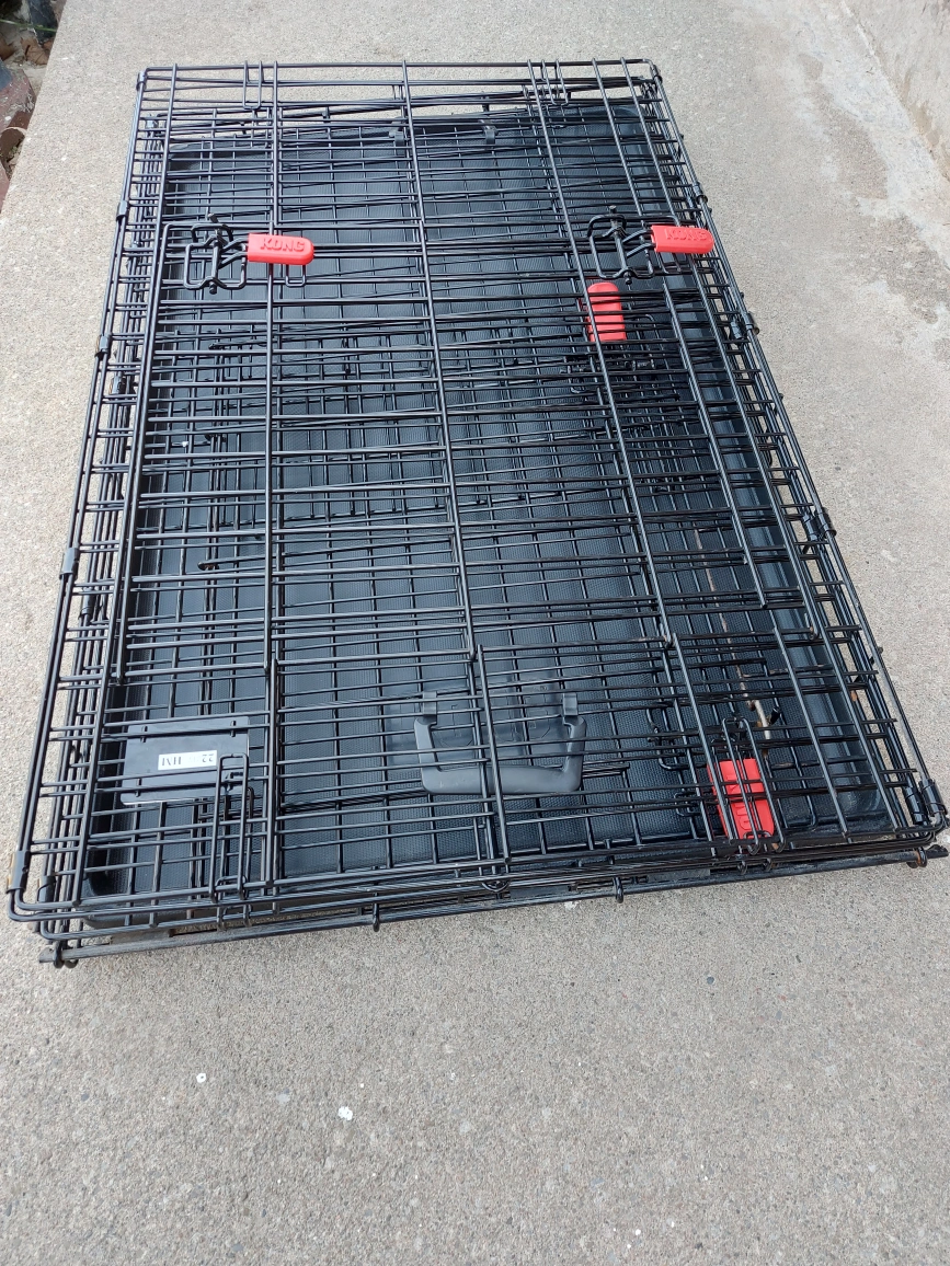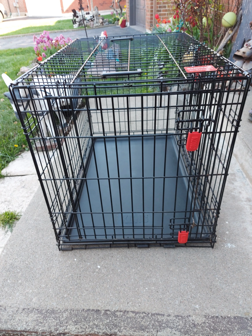 This used KONG Ultra-Strong Two Door Crate is designed for durability and provides a safe and secure environment for your dog through every stage of life. Perfect for training during the early stages of companionship, the crate later transforms into a personal den-like space for your adult dog. The unique, reinforced doors feature angled locking tips and paw blocks on the slide-bolt latches to give added confidence that your dog will be safely contained. (Retails new over $150 at pet stores). Location is Martin Grove Rd and Steele's Ave W. area