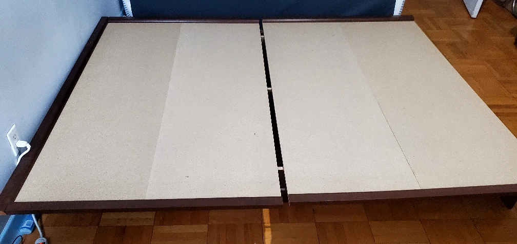Giving this away for an upgrade. It's a low bedframe and in very good condition It's for a Queen Size mattress and comes in 3 parts. Willing to deliver around North York for a fee but otherwise it's free for pickup. Send me a message for any other questions you might have
