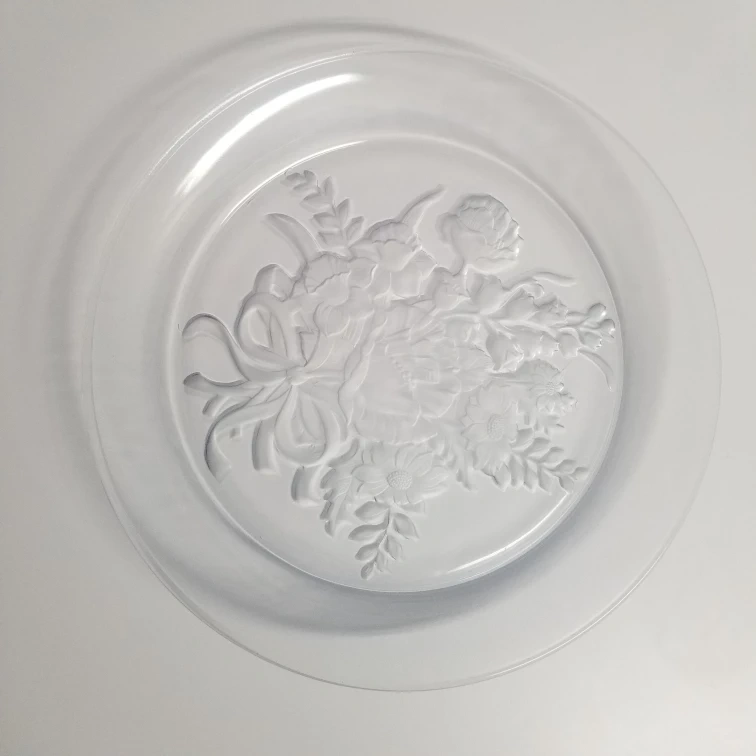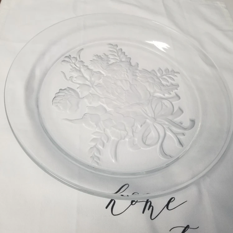 Gorgeous 13.5" Carved Frosted Glass Platter, French Country