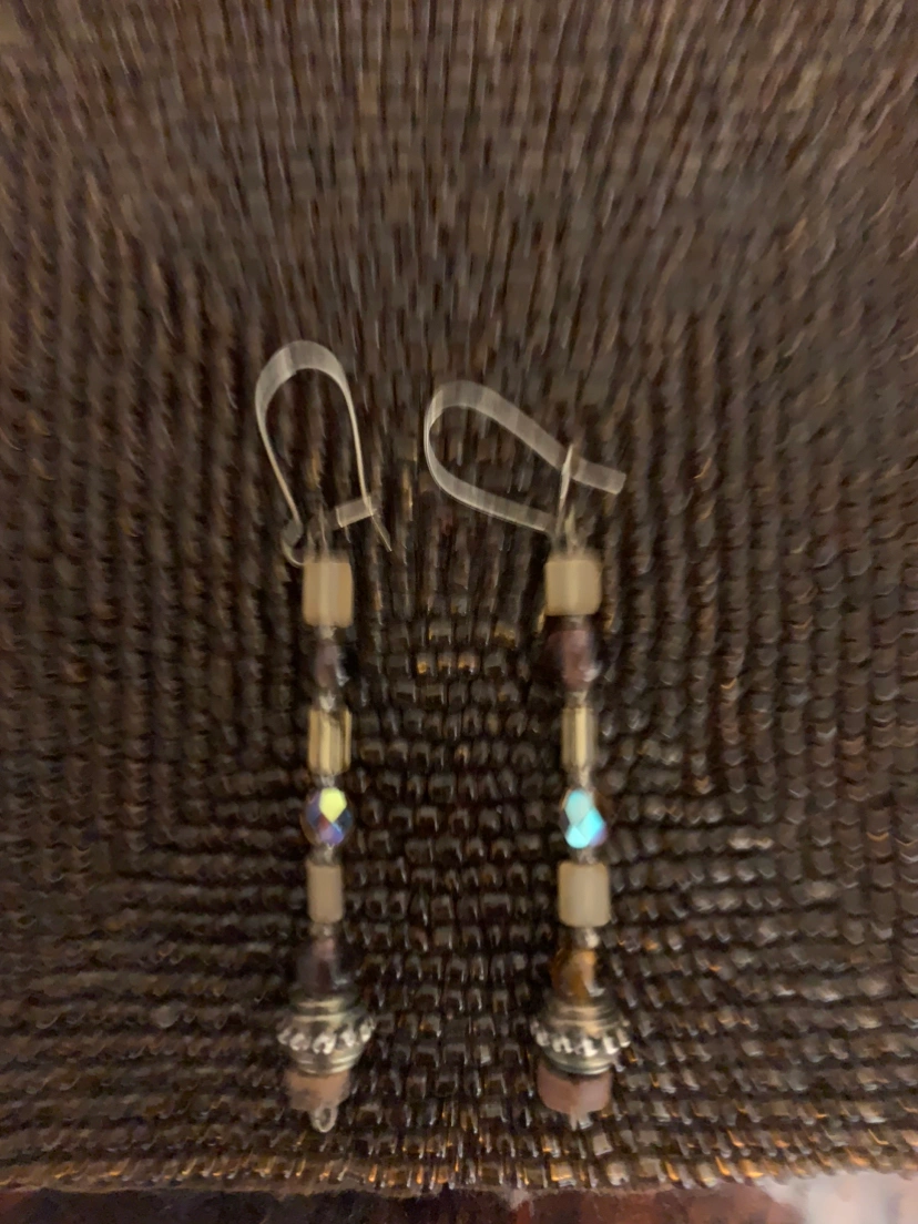 - multi brown beaded hanging stick earrings