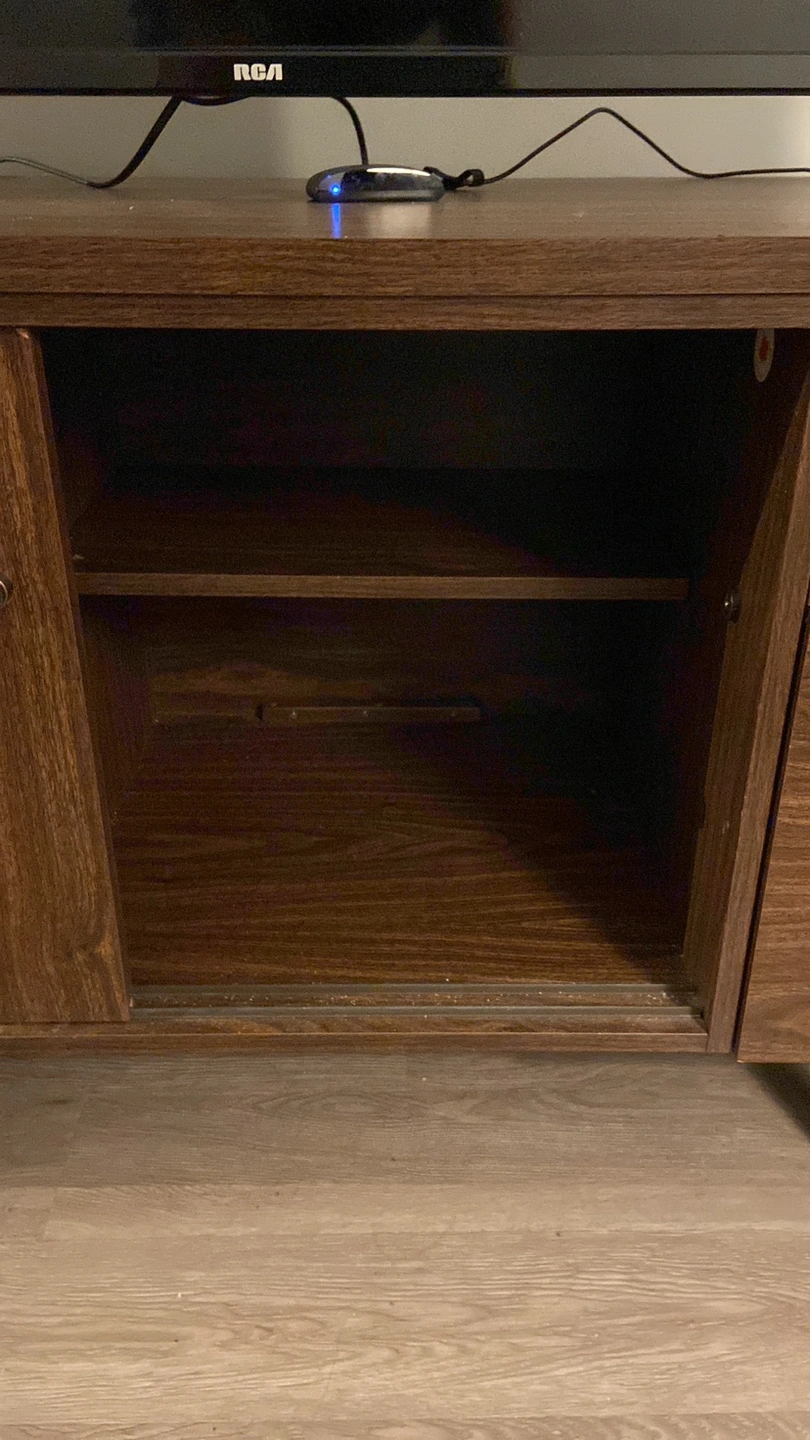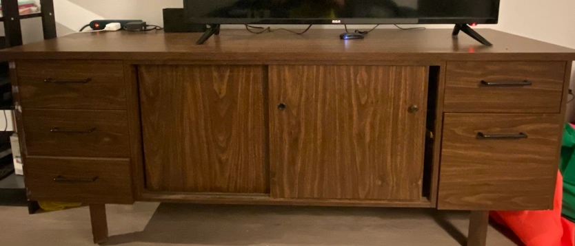 Wood credenza used as a TV stand and storage. It is great for condos or reduced spaces since it is multipurpose. Giving it awaya since I dont have space and no need more storage. Pick up only this week!