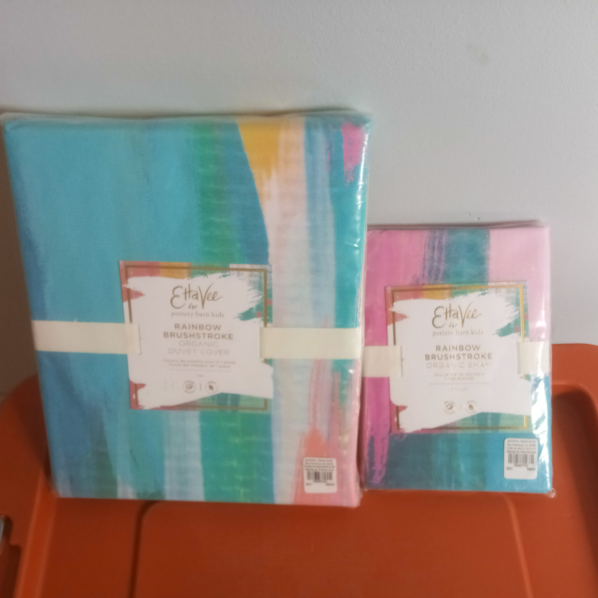 74organic rainbow duvet cover and organic rainbow shams all new in packages size twin