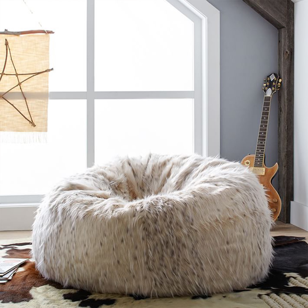 Medium sized, Snow Cat Faux-Fur Bean Bag Chair from Pottery Barn. Original price: $250