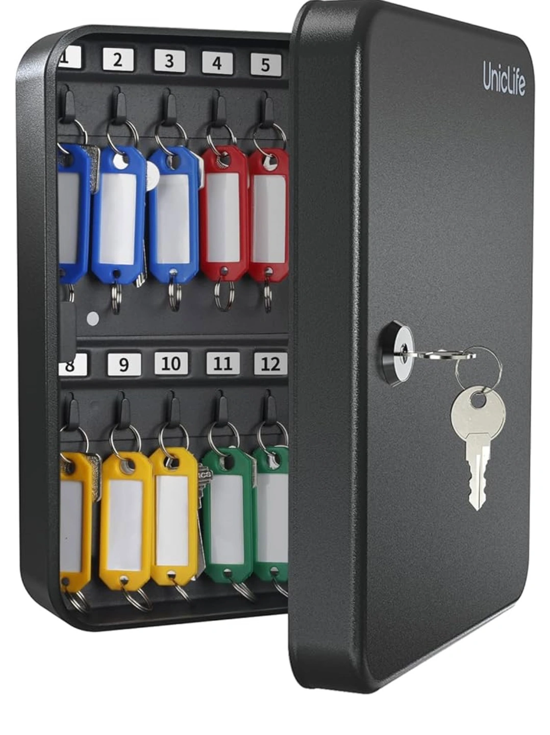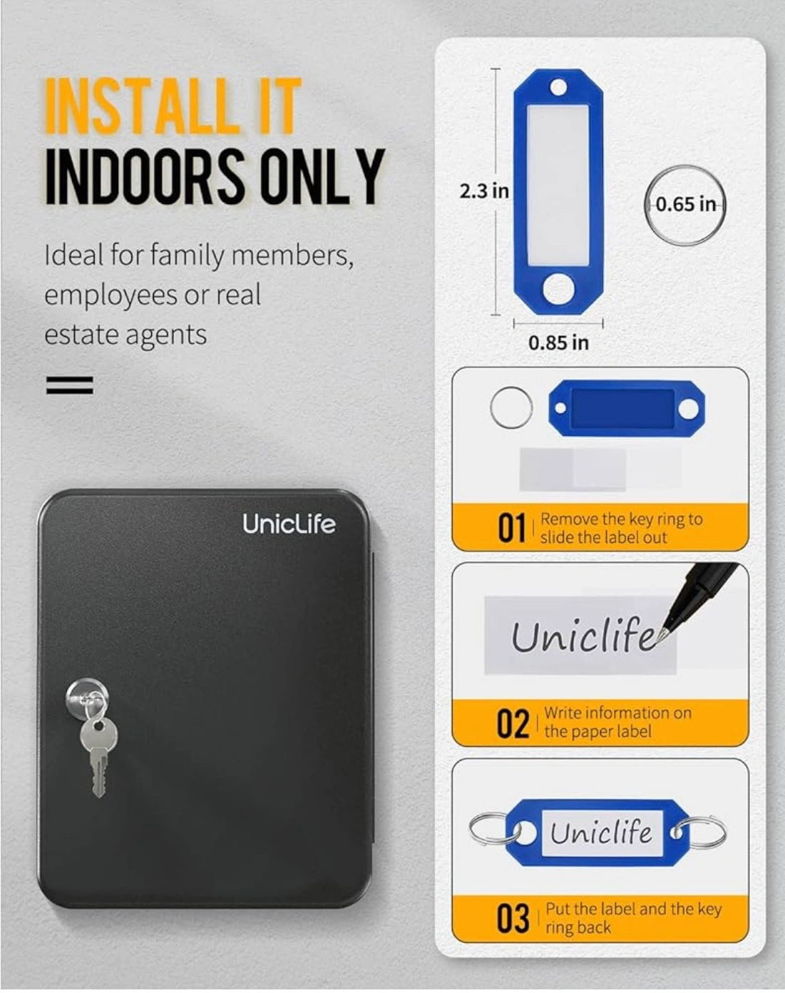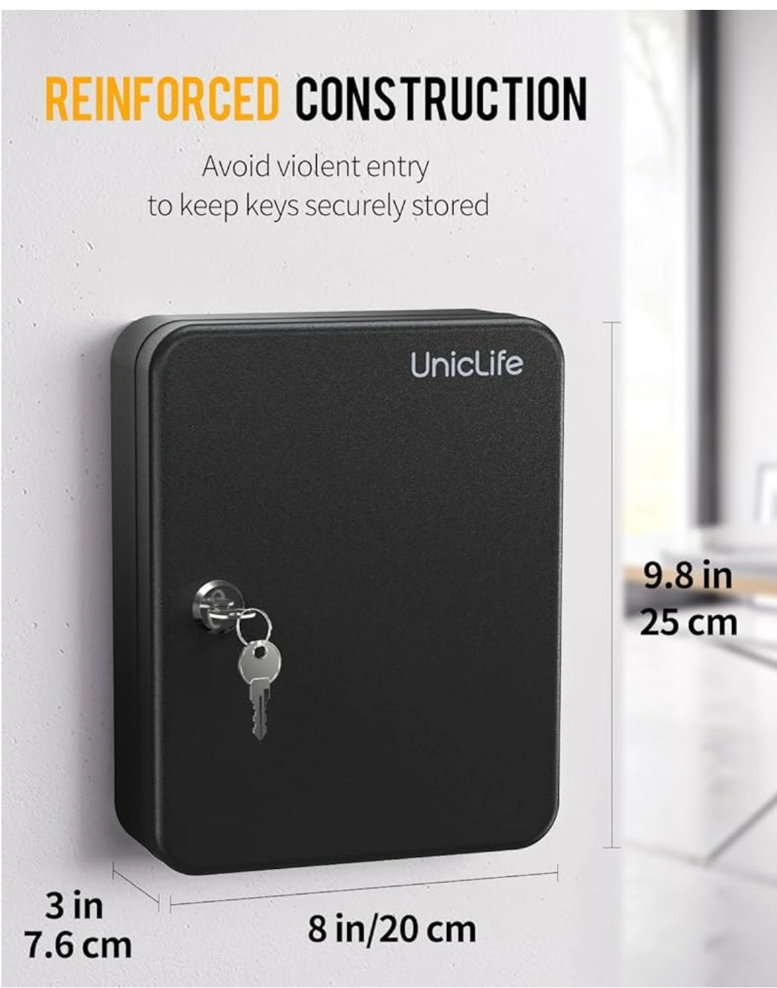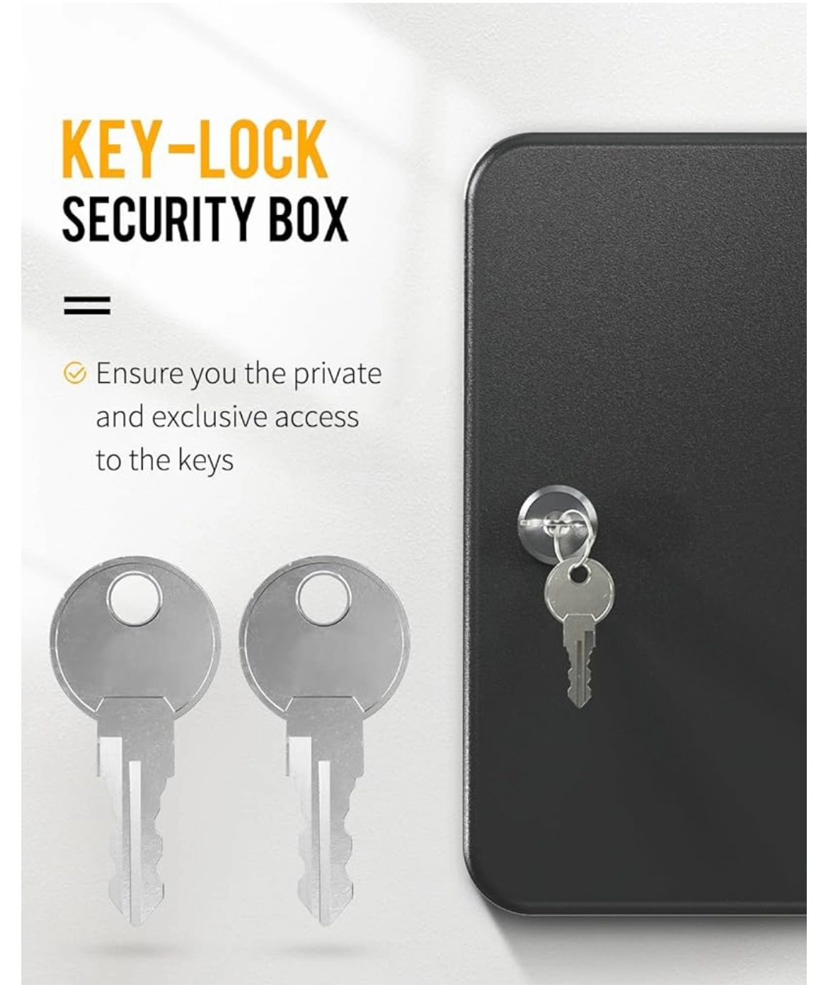 Pawfly 28-Key Steel Key Cabinet with 2 Unlocking Keys Wall Mounted Key Organizer Black Frosted Security Box with Hooks and Large Key Tag Labels Identifiers in 5 Assorted Colors