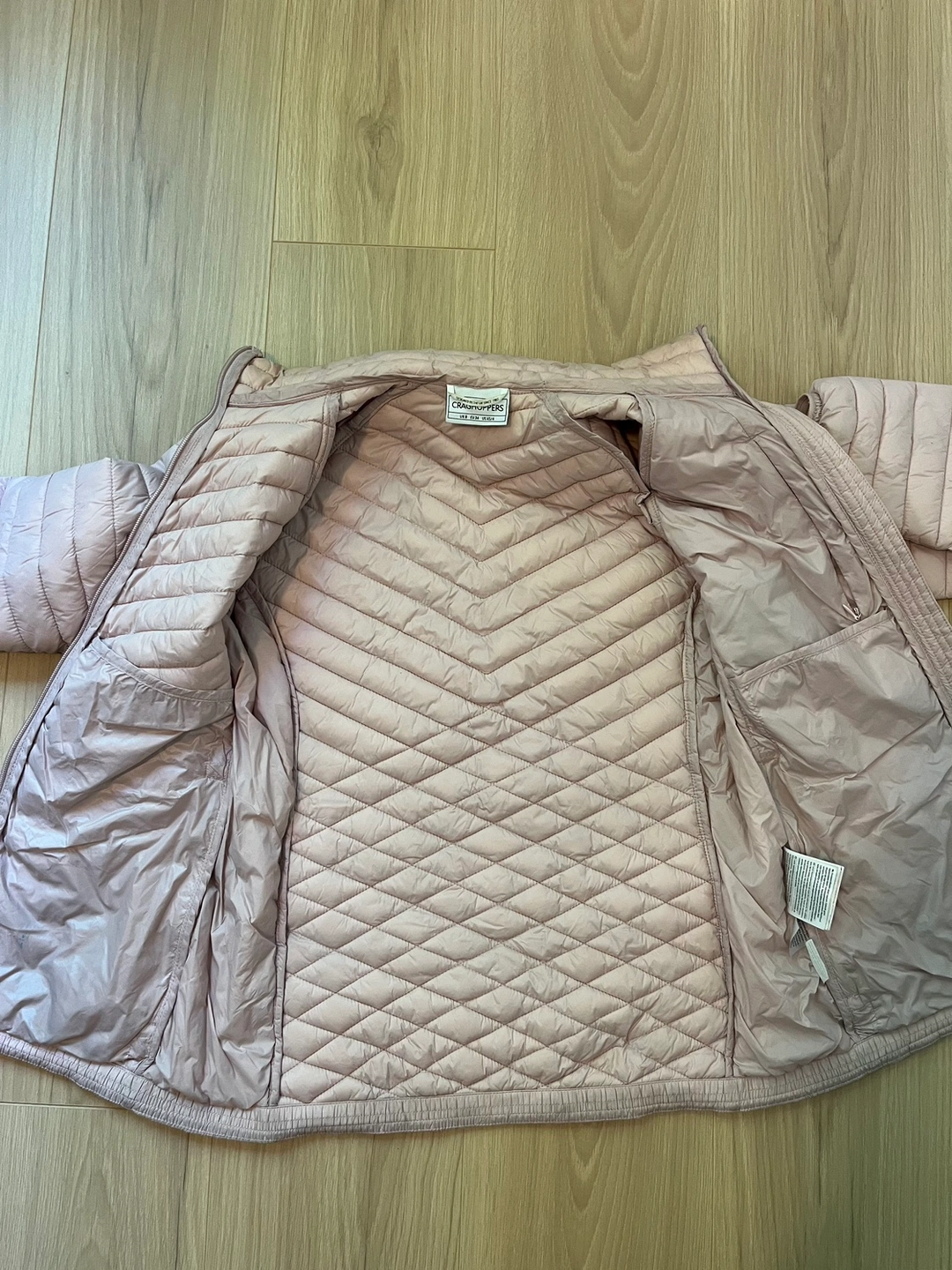 Pink Puffer Craghoppers jacket.