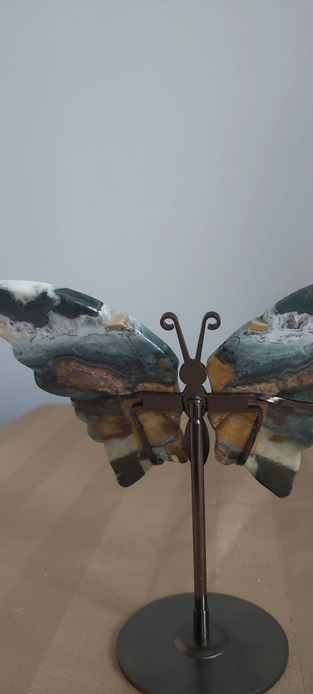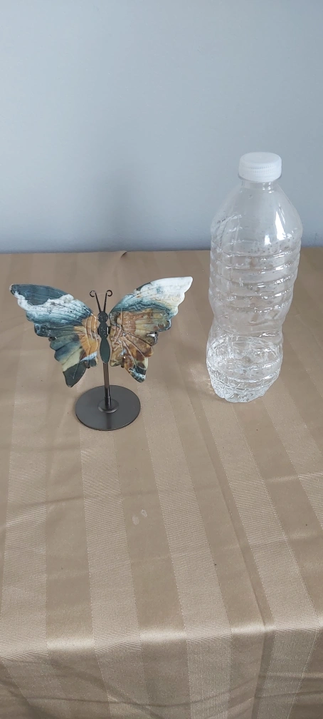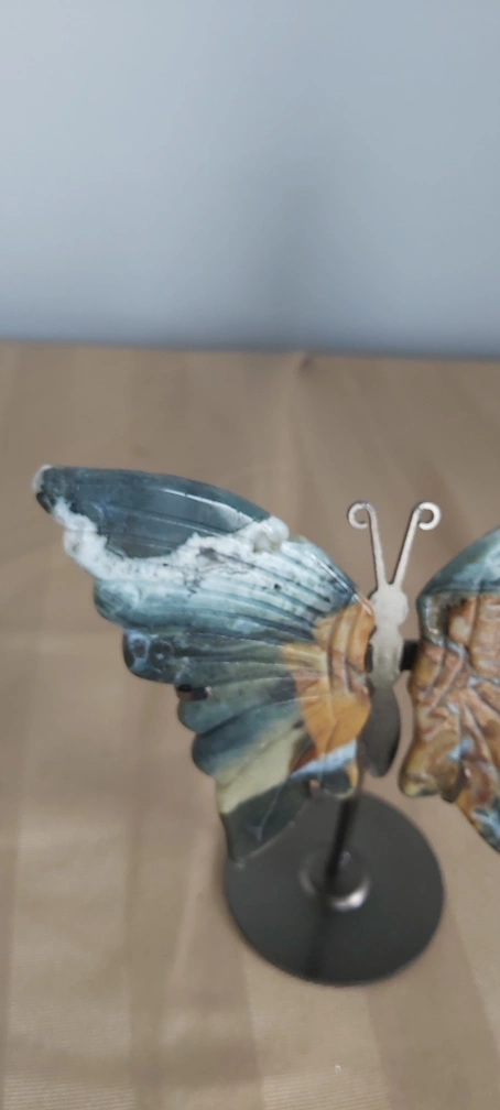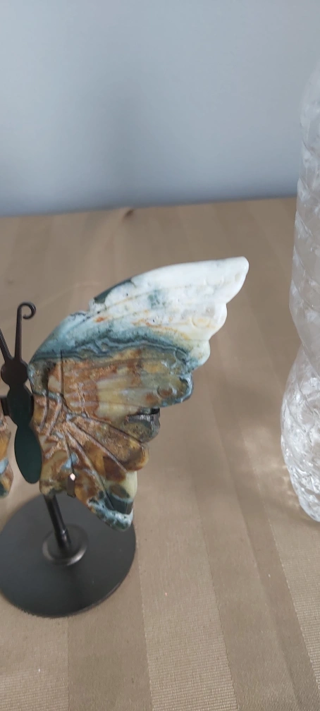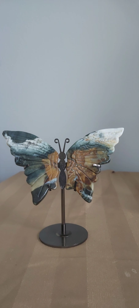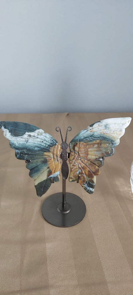 New, real jasper butterfly on stand. Natural druzy can be seen. Perfect first butterfly gift for spring. Water bottle is there to show size. Wings both come off of stand. Pick up Walkerville area.