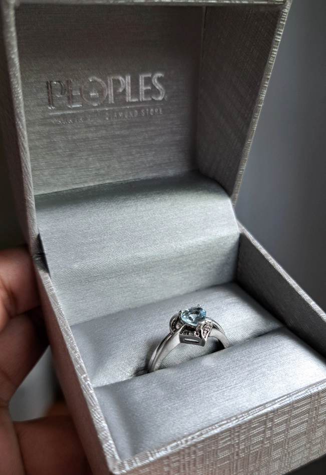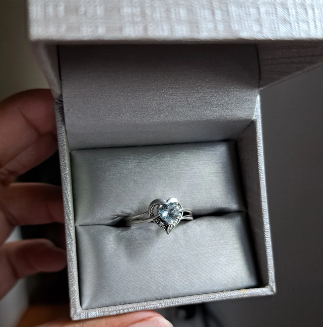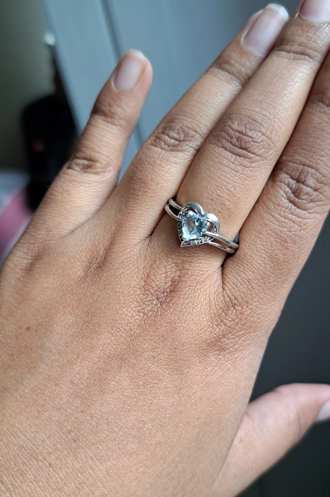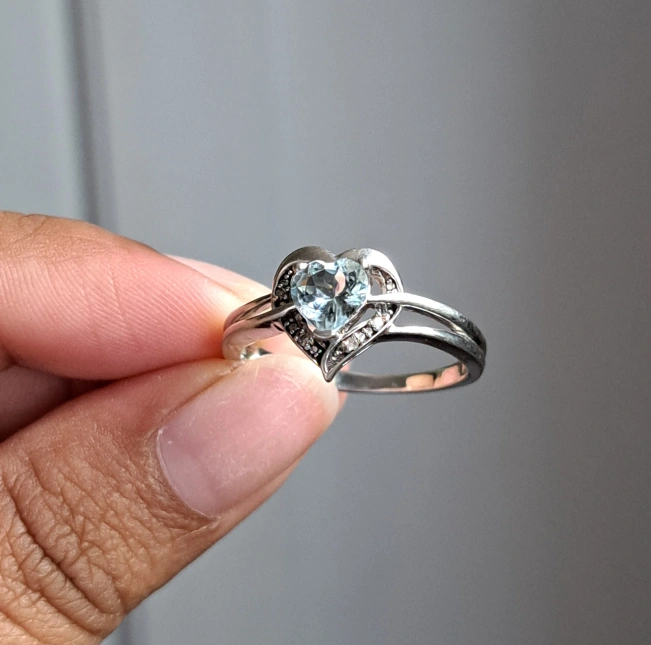 ☆ Heart shaped aquamarine and diamond accent ring in sterling silver