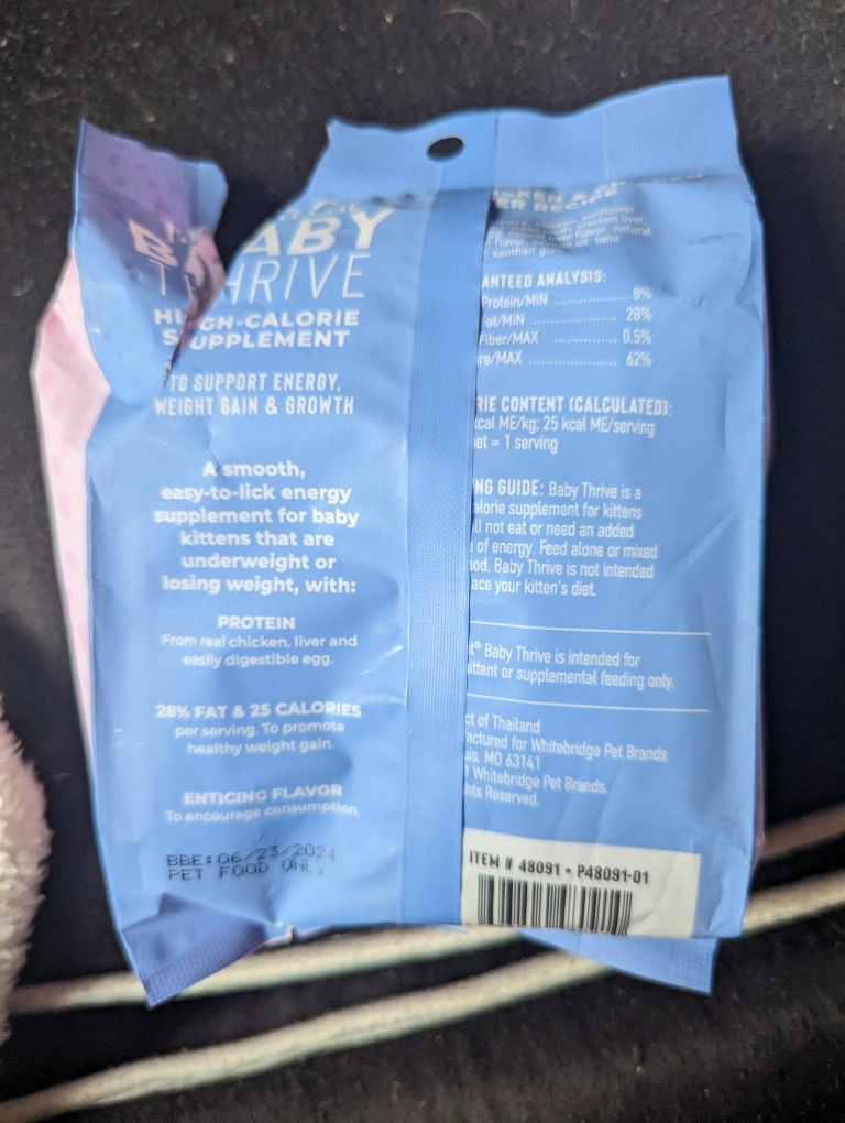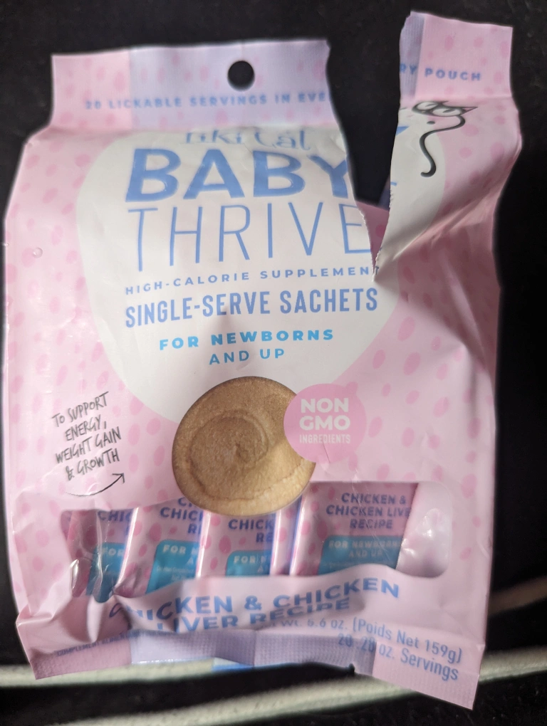 Free Baby Thrive Kitten Supplement - The bag was opened and 2 pouches used but the remaining products are sealed.