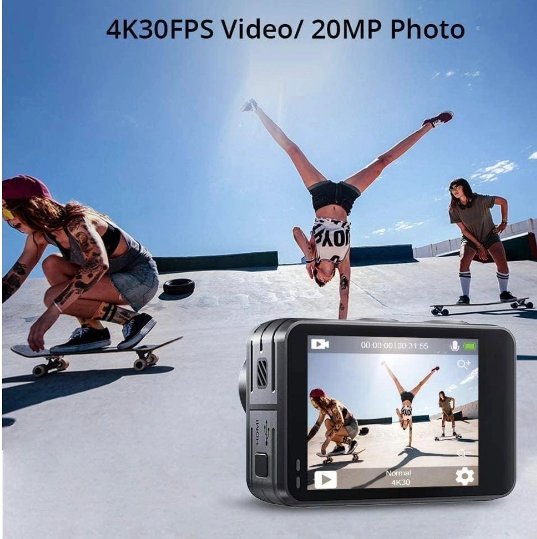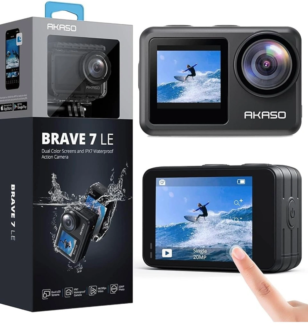 AKASO Brave 7 LE Dual Display 4K 30FPS 20MP WiFi Action Camera with Touch Screen Vlog Camera EIS 2.0 Remote Control 131 Feet Underwater Camera with 2X 1350mAh Batteries
