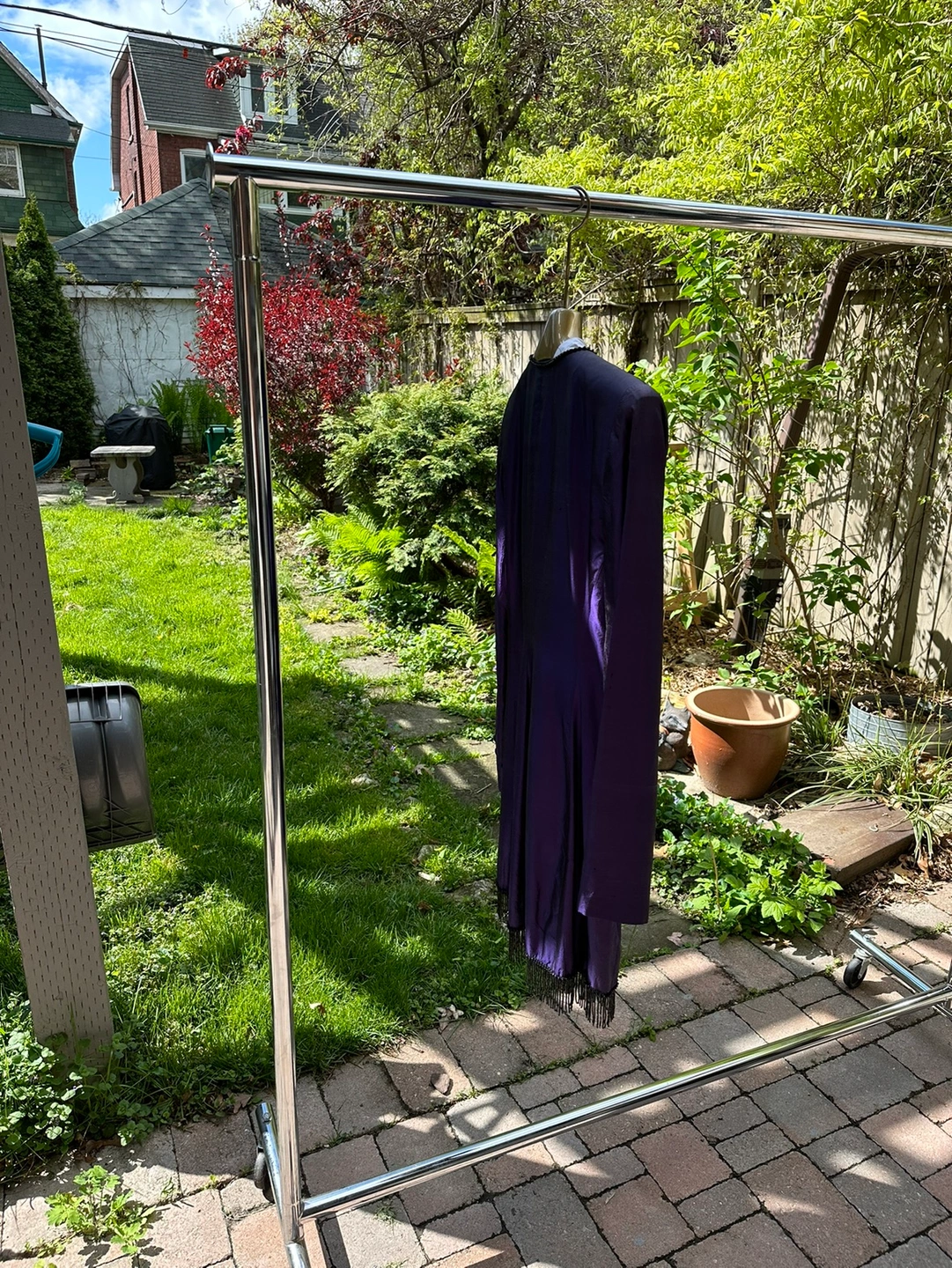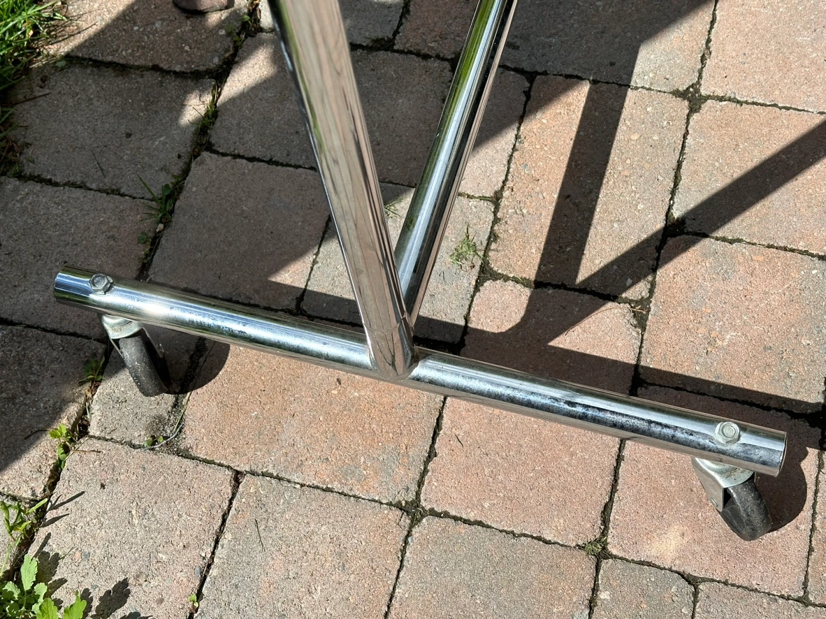Metallic clothing rack on wheels