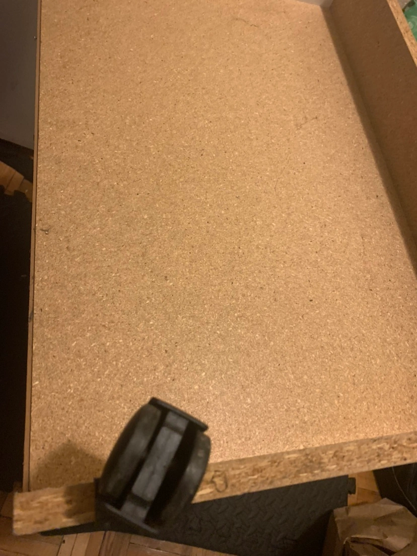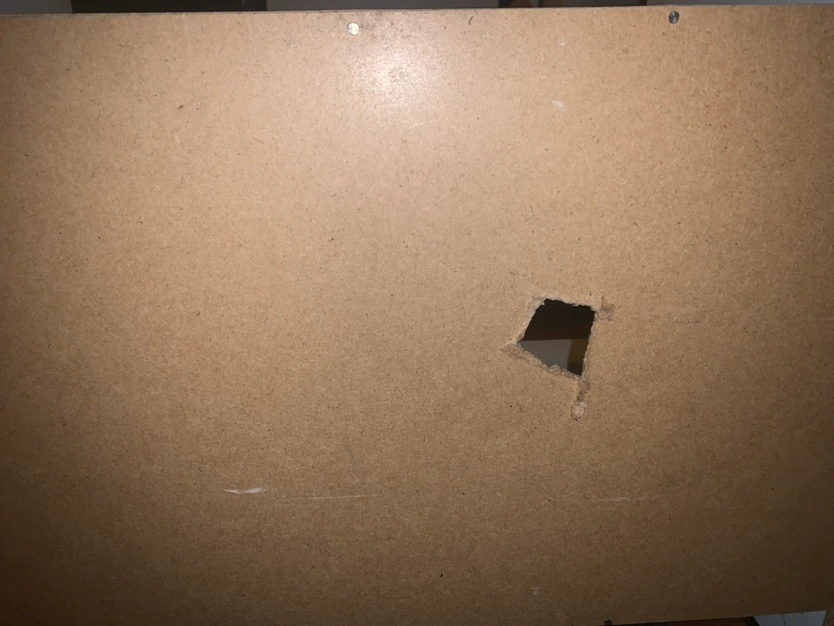 We made a hole in the backboard for the wires.