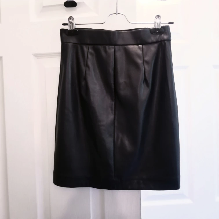 Pairs well with everything and sits at a flattering length. This cute and simple pleather skirt is a true wardrobe staple and must have.