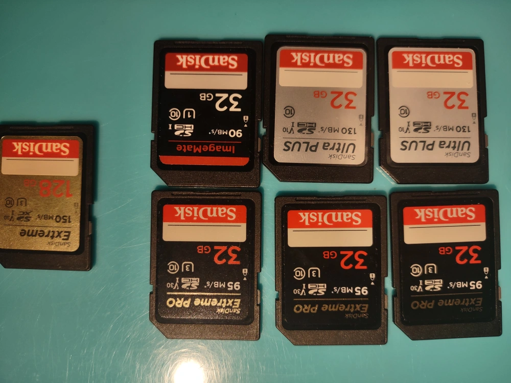 six 32 gb sd cards, plus one. 128 gb sd card. all togethier 7 pieces for only $70