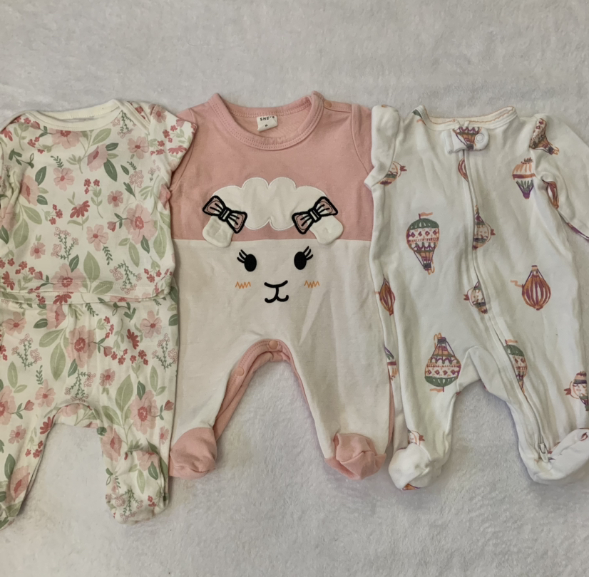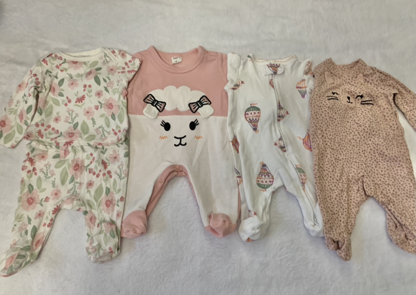 59Baby girl newborn sleepers are available for $5 each or buy the whole set for $18. Includes some clothes from Carter’s. In great condition and are the perfect size for your little one.