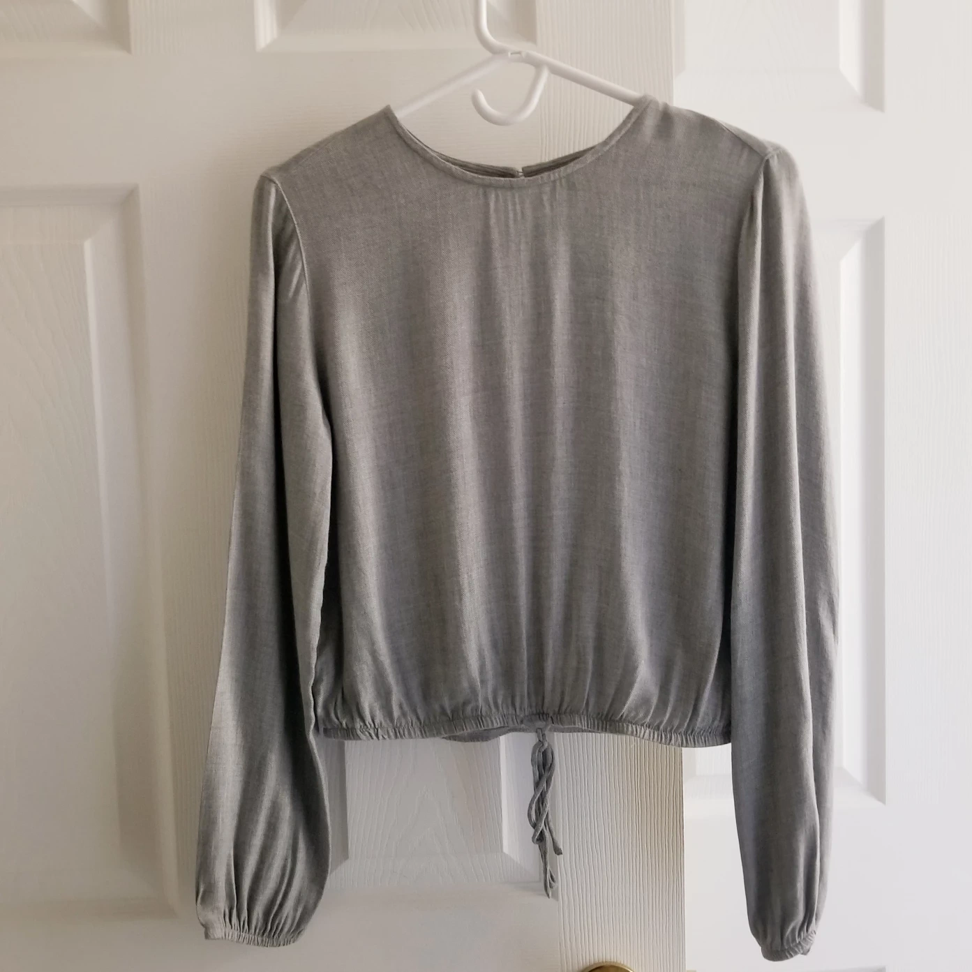 DYNAMITE Grey Long Sleeve Top, Tie Waist Blouse
