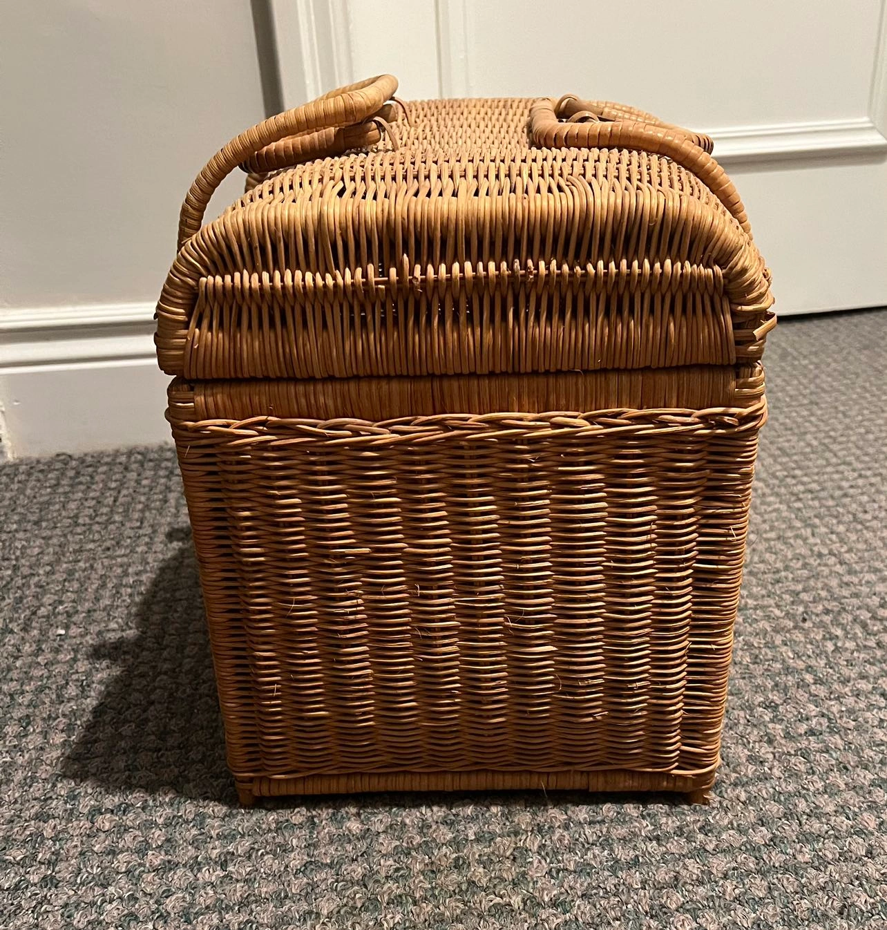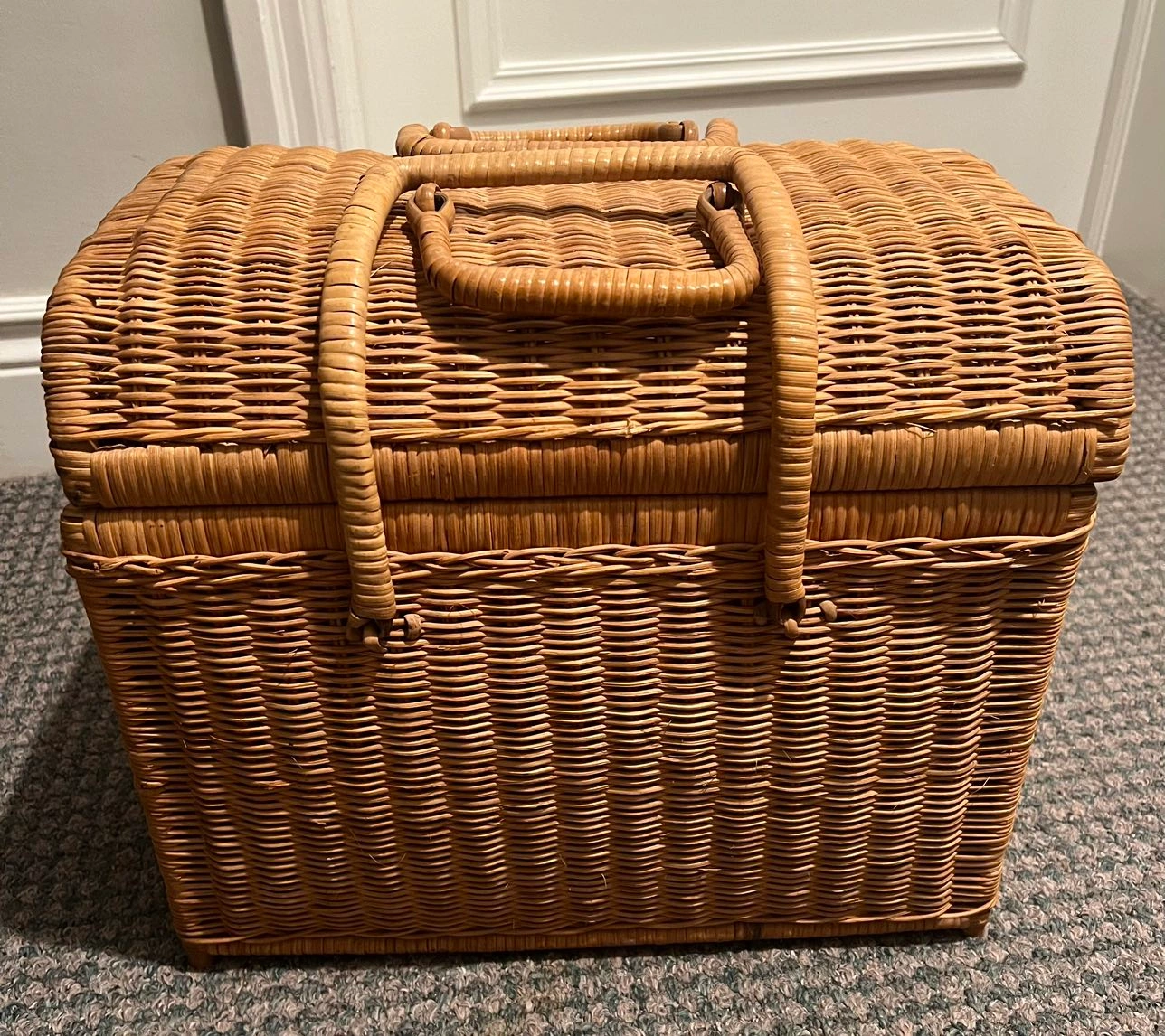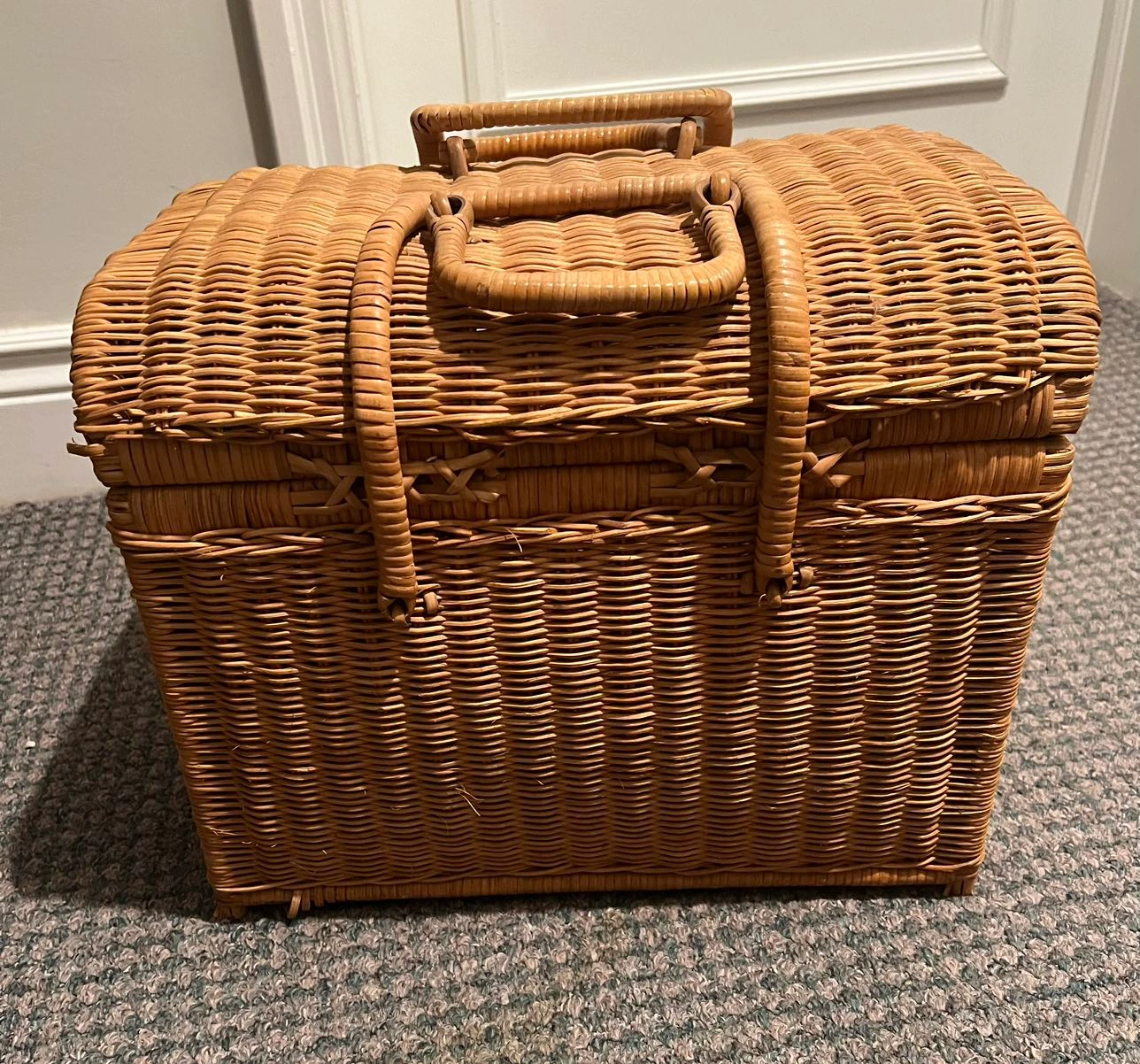 A really nice wicker basket that would be perfect to carry your picnic items. Well made and easy to carry. In excellent condition.