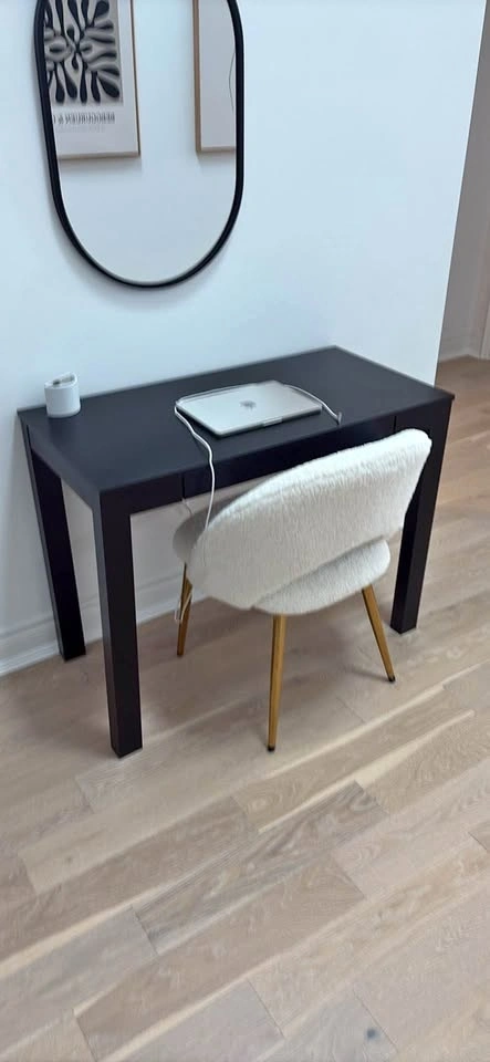 Beautiful office desk and comfortable chair. Perfect size for a small room or home office space! Can be sold separately. Preferred to be sold as a package deal for $130. Chair - $80, Desk - $50. DESK DIMENSIONS: 19 1/2” deep x 39” wide x 30” tall. CHAIR DIMENSIONS: 18” tall (seat height) x 32” tall (back height) x 21” wide. Available for pickup only!