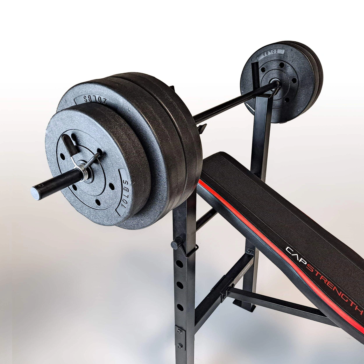 Cap Barbell Adjustable Utility Weight Bench for Full Body Workout with 100-lb Weight Set