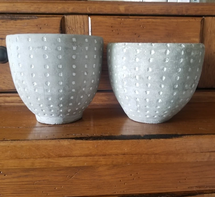 these 2 cute cement planters are perfect to hold your small succulents, plants and faux flowers.