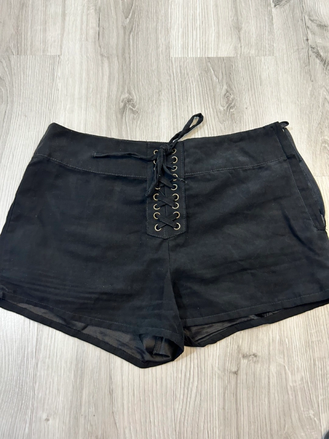 Black boho shorts with faux corset ribbons
