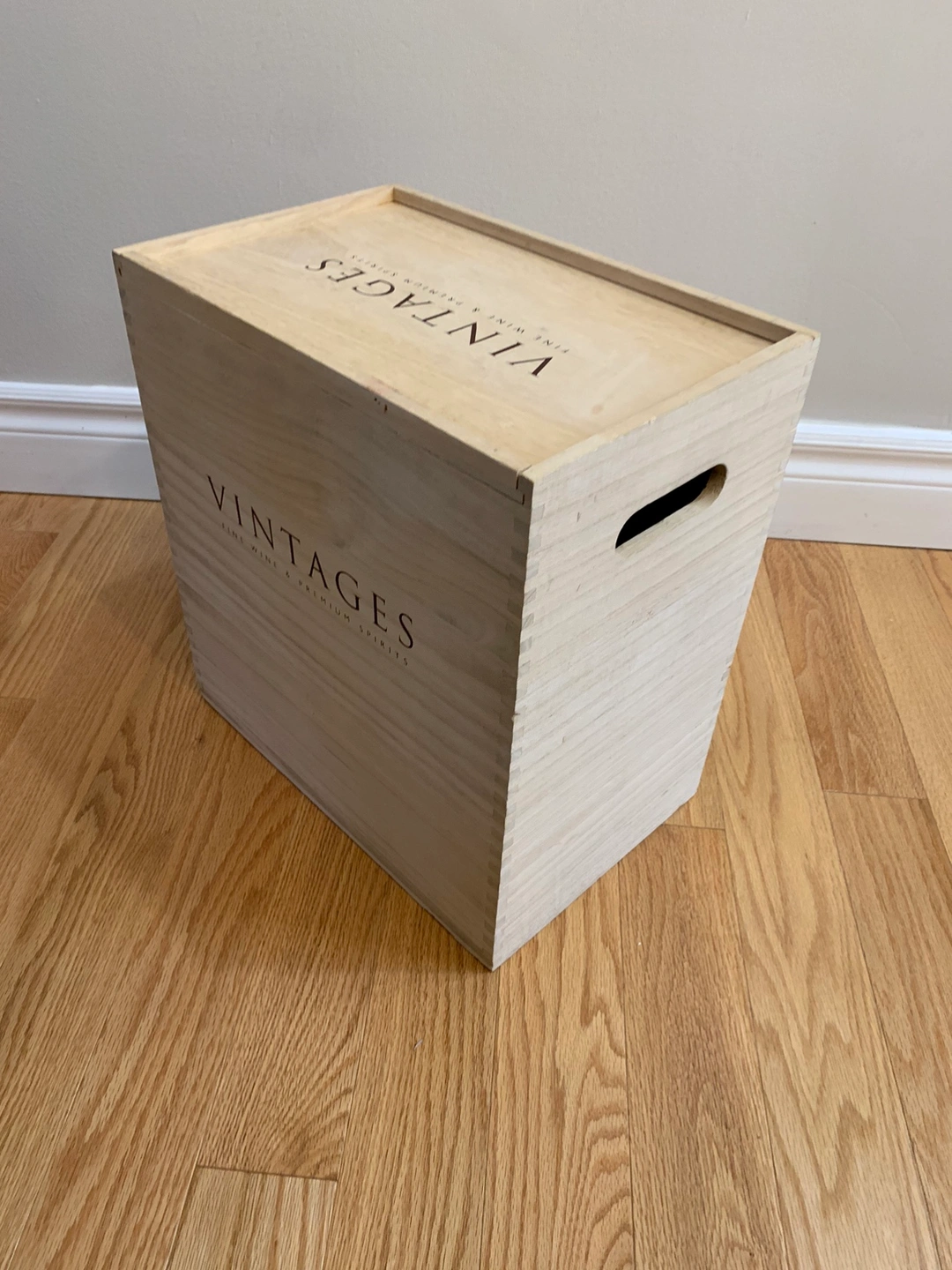This lidded pine wine crate is in good condition and holds 6 bottles of wine or spirits. Great to use to store your extra bottles and also if you are transporting wine and spirits to your cottage.