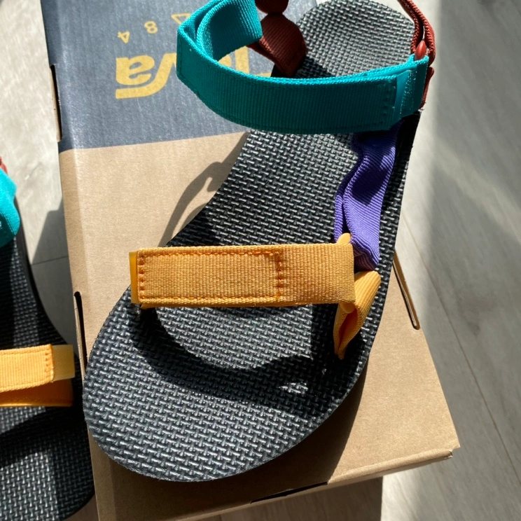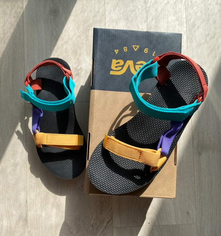 These fun platform Teva sandals are super comfortable with a pop of colour. These have the colour blocking style popular in the 80s and 90s.