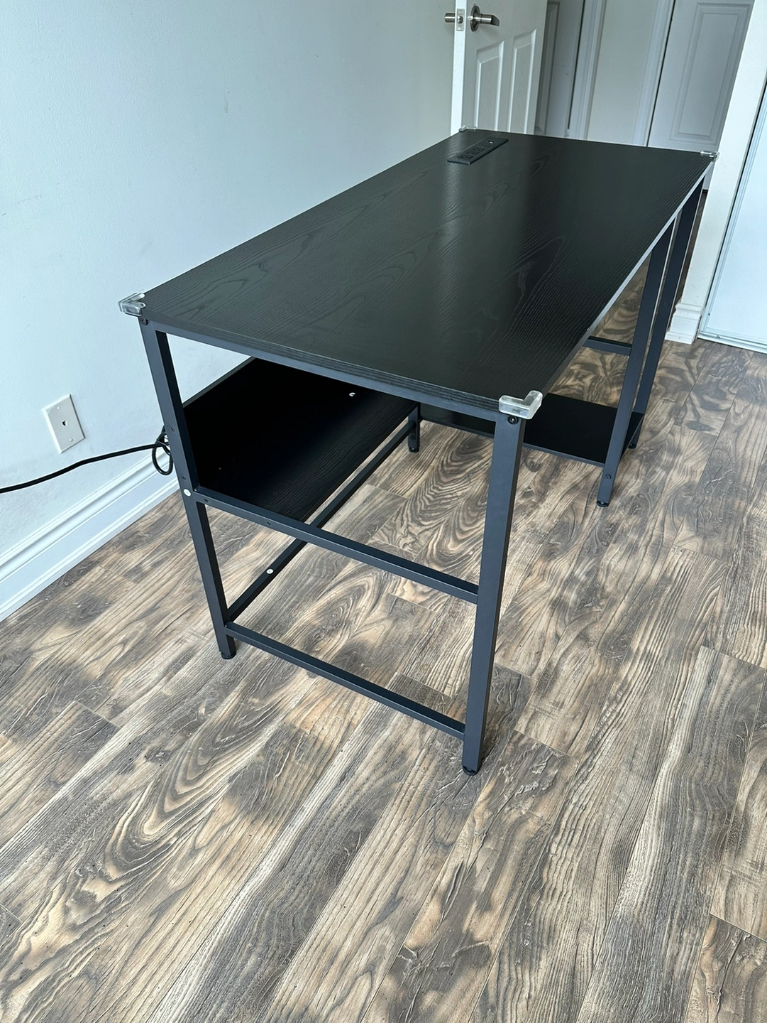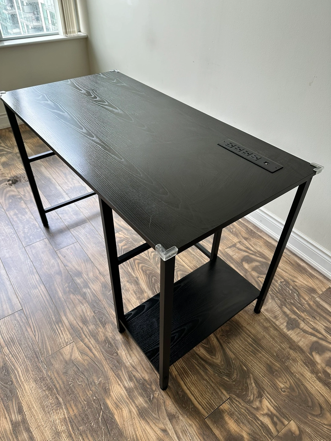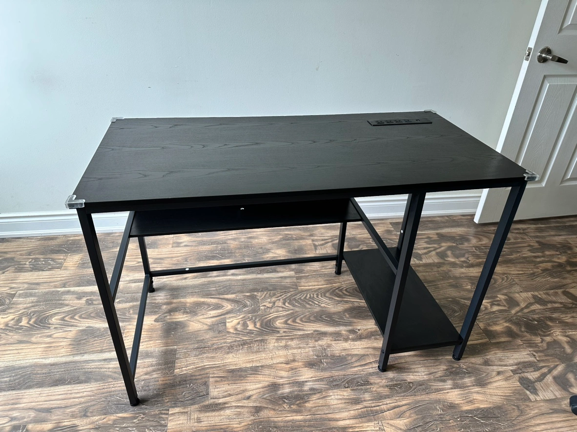 Purchased from Amazon. Perfect for work from home, and for students. It has storage shelves and a power outlet. Check link for dimensions: httpsh://a.co/d/ixRYwL3 Rolanstar Computer Desk 55” with Power Outlet & Storage Shelves, Home Office PC Desk with USB Ports Charging Station, Writing Study Desktop Table with Stable Metal Frame, Rustic Brown