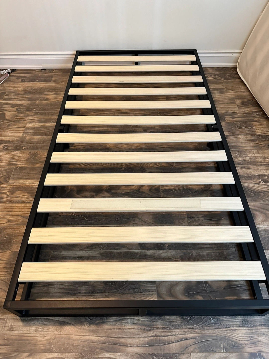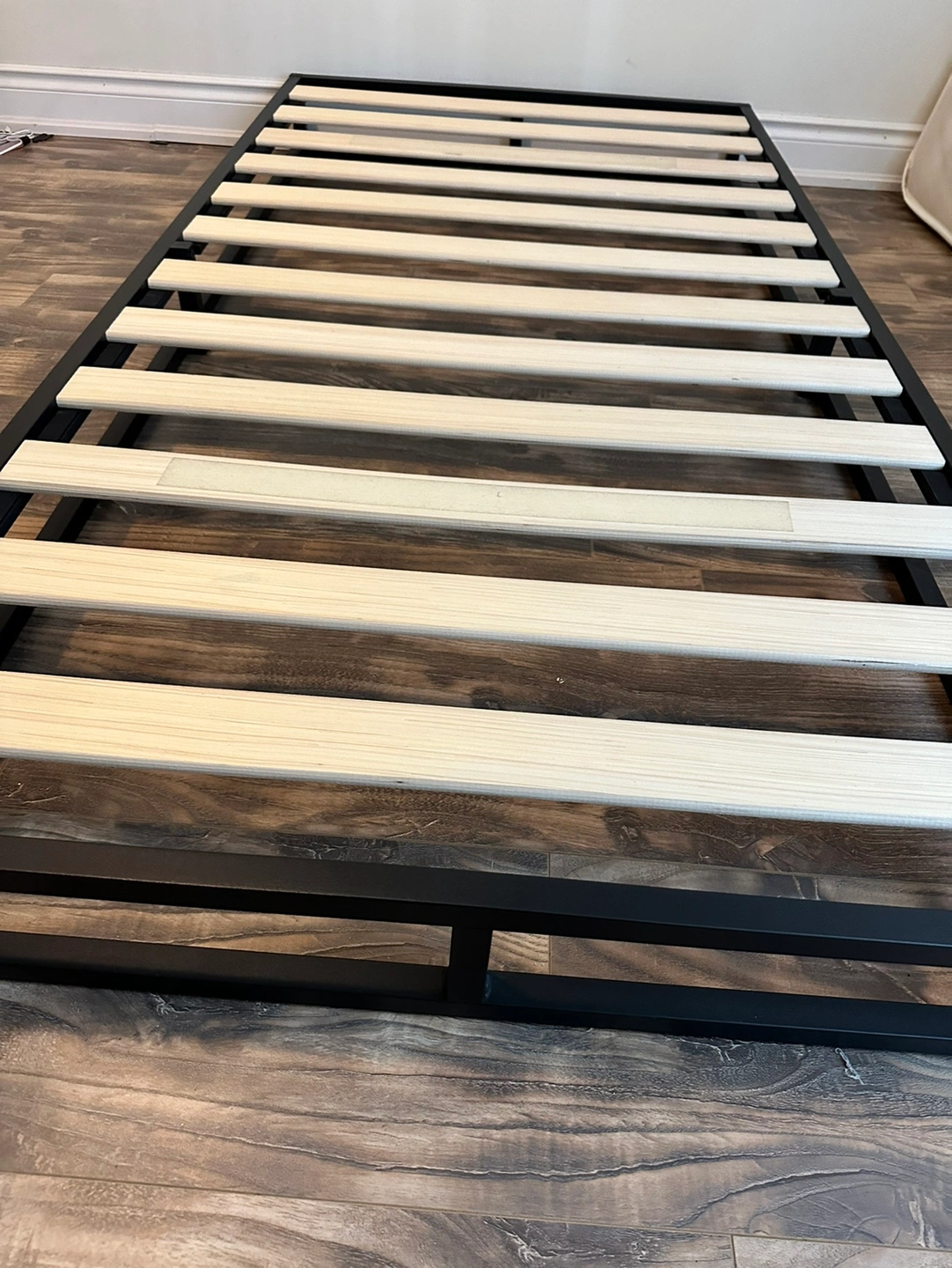 (Walmart: https://www.walmart.ca/en/ip/zinus-joseph-6-inch-platform-low-profile-metal-bed-frame-mattress-foundation-no-box-spring-needed-wood-slat-support-5-year-warranty-black/6000200951401?from=/search)