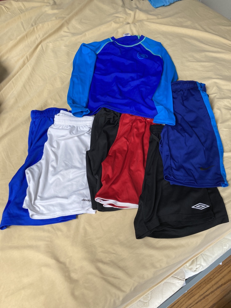 6 pair of shorts 1 sun protective swim shirt Size 8-10 Take all for $7!! Great condition