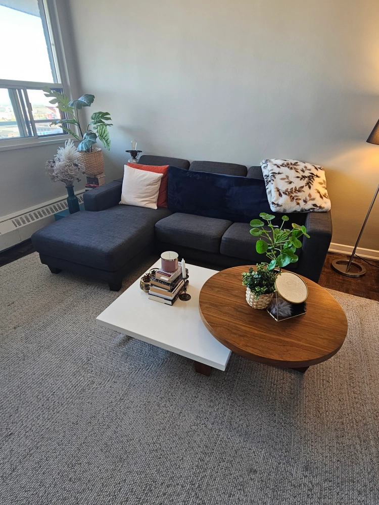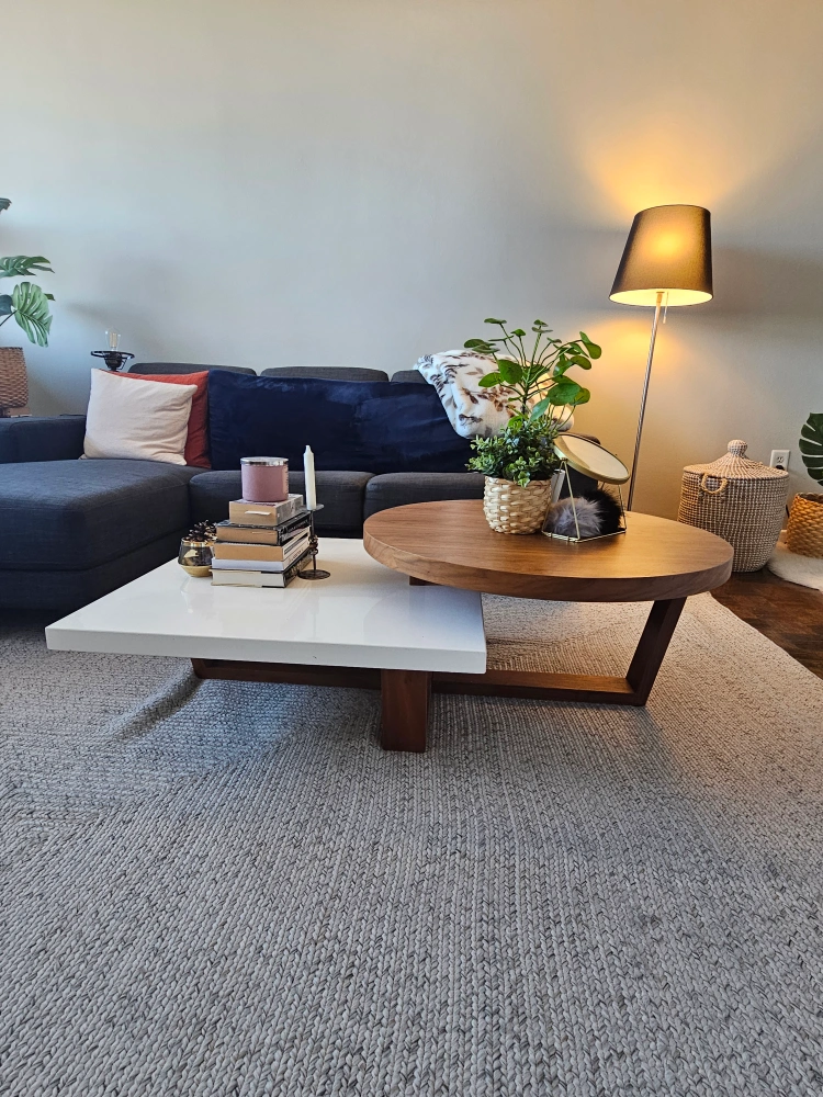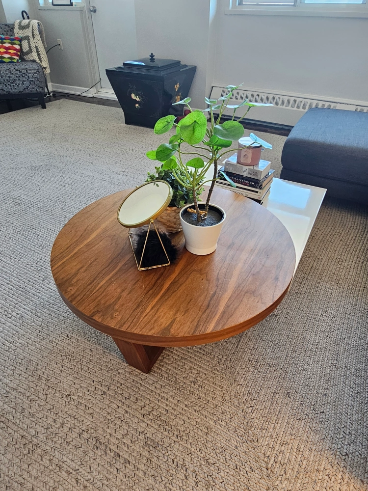 Selling a sleek and modern coffee table, ideal for any living room. It has a small coffee ring mark, adding a bit of character, but it’s still in great shape. This piece has been in a pet-free home and is well-maintained. Must be gone by May 28th due to our move. Don’t miss out on the matching sofa listed in my other posts!