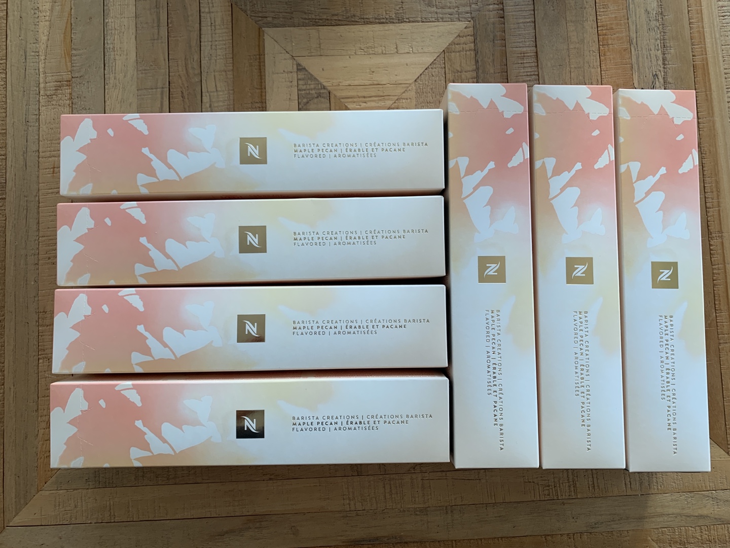 Brand new Nespresso Vertuo Coffee Capsules Sleeve in Maple Pecan flavor. $10 per sleeve. Each sleeve contains 10 coffee pods, and there are 7 sleeves available. The expiration date is February 28th, 2025. Pickup is available at the Yonge and Lakeshore area. Enjoy your coffee! ☕️