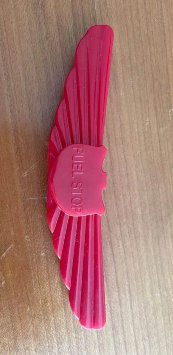 The FUEL STOP can be kept separately in your pilot bag to quickly snap onto a gauge that comes with a rental aircraft, or kept permanently installed in your own aircraft for regular use. The FUEL STOP is also shaped like a set of red pilot wings which makes finding the gauge in your pilot bag or aircraft seat pocket a snap.