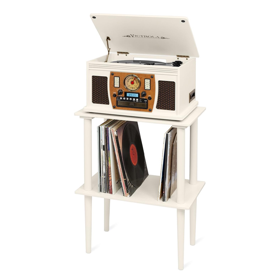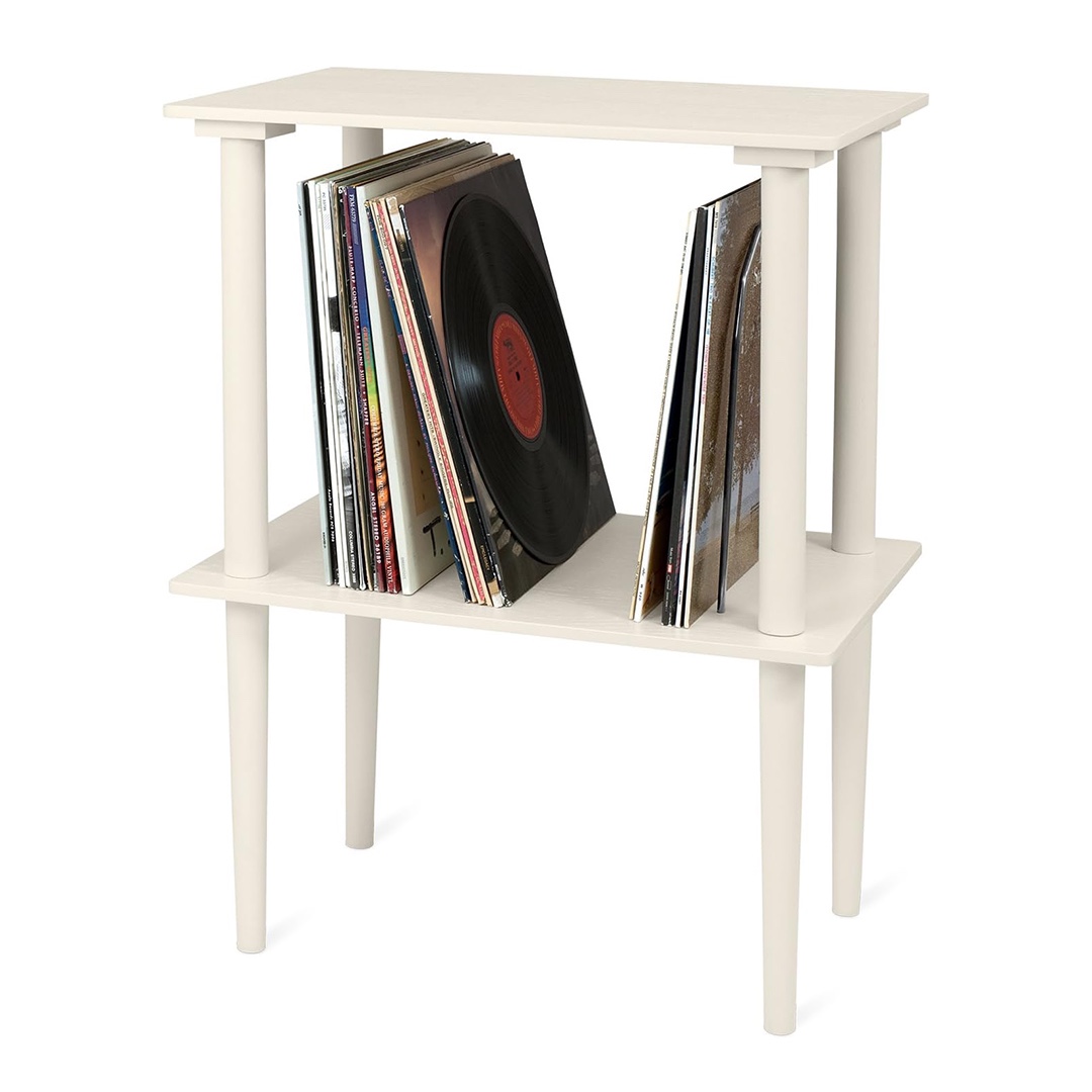 Made of real wood. Could fit up to 50 vinyls records!