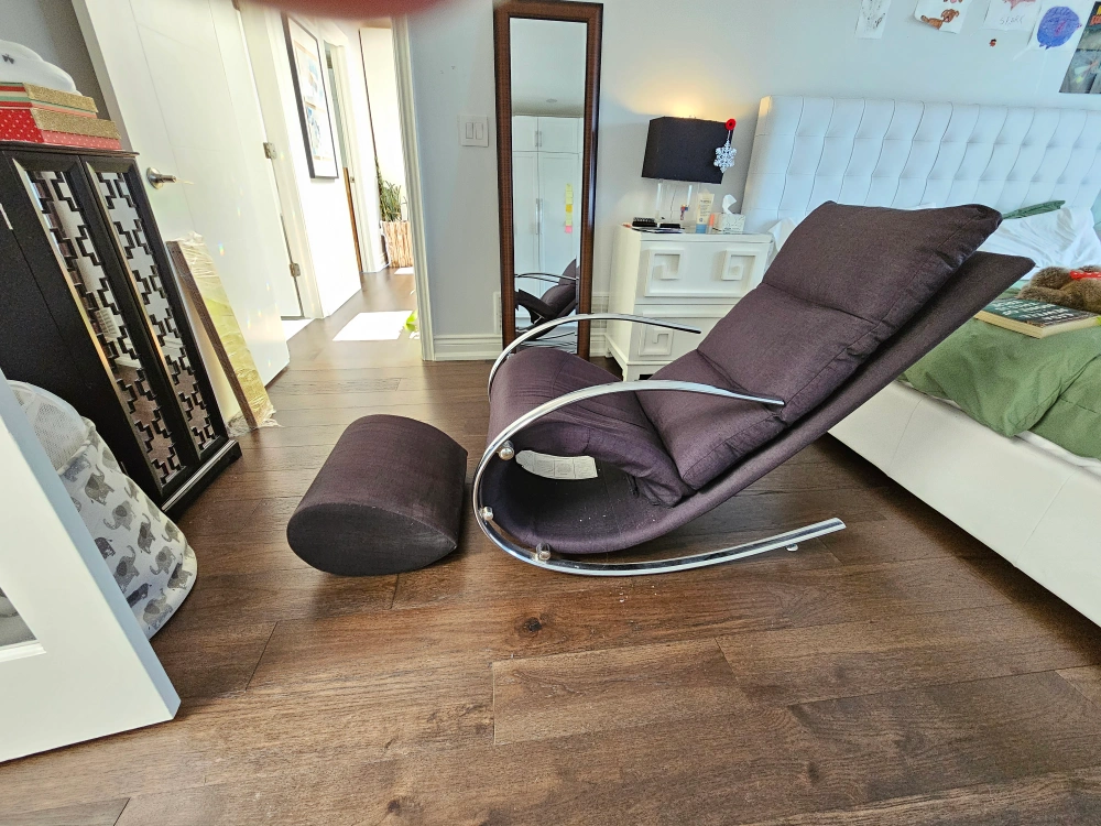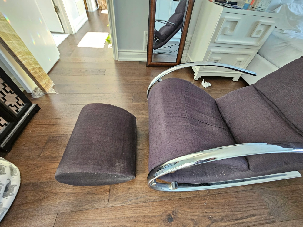 Dimensions: approx. 67 x 111 x 102 cm || Cover: woven fabric, frame chromed || Optics with a load capacity of max. 120 kg || Swing function, including stool.