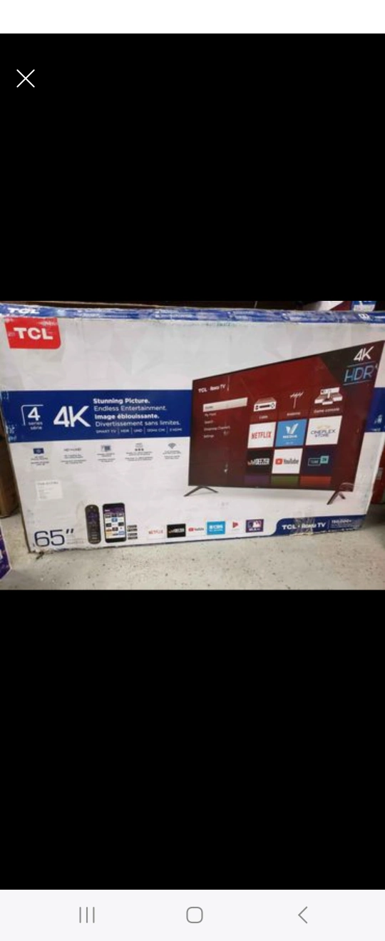 This is an amazing new open box TCL 65" 4K ROKU SMART LED TV.