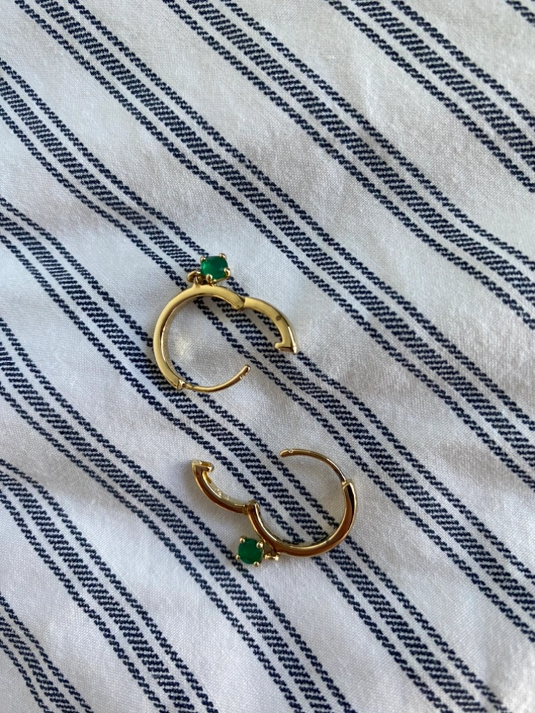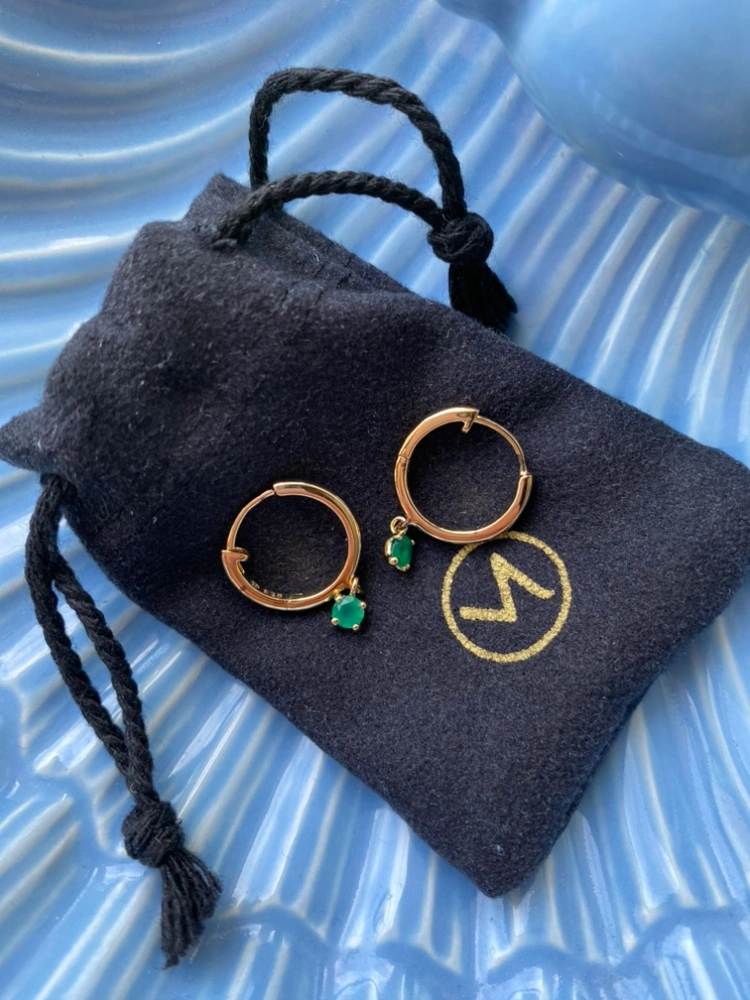 Elegant gold vermeil huggies hoop earring from Mejuri. Worn once but minimal wear to vermeil from storage. Metal underneath is silver. Please look at the last picture for reference. Not hypoallergenic. Sale is final.